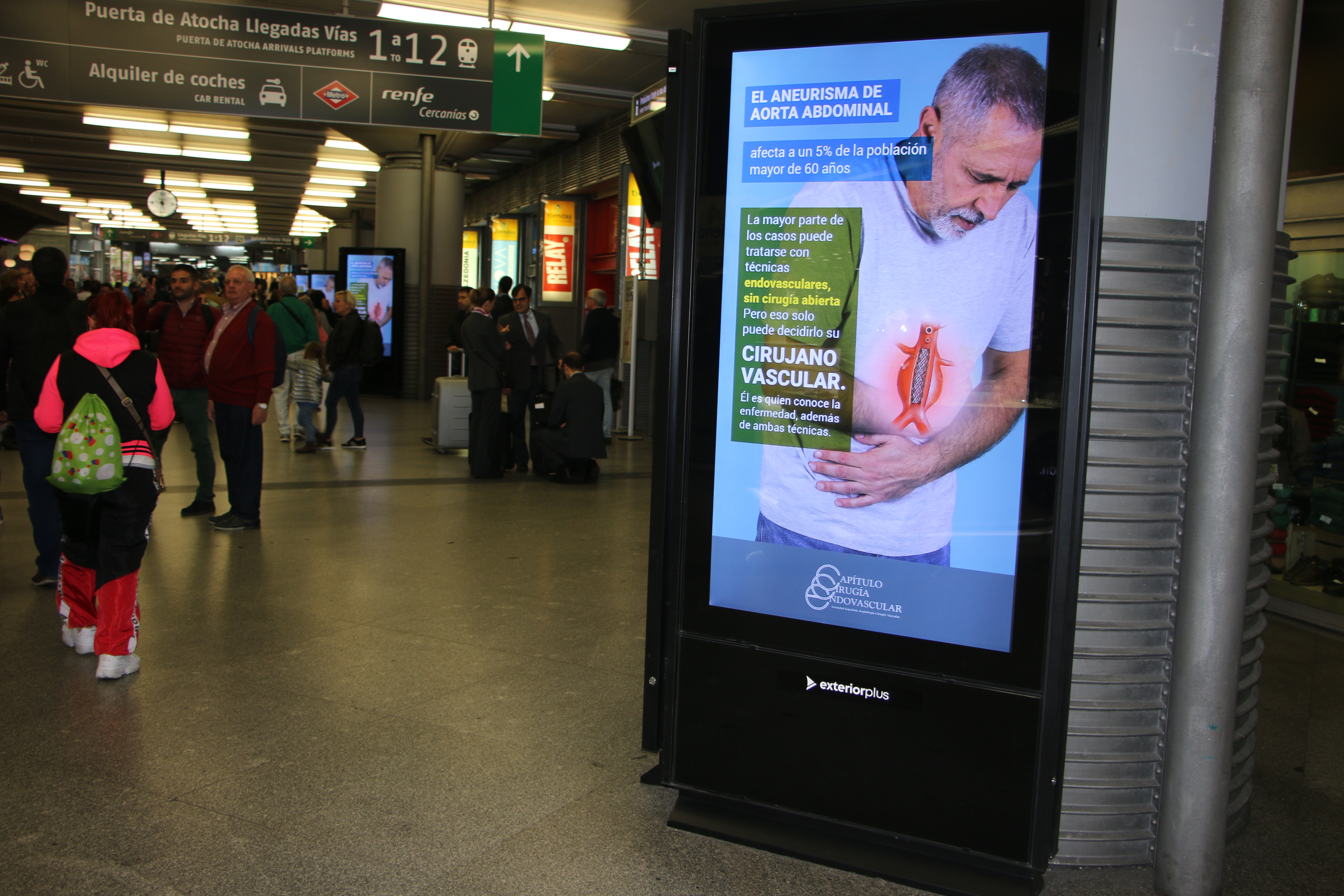 Madrid, 30 de octubre de 2019. A partir de hoy llega a las estaciones de Renfe la campaña con la que el Capítulo de Cirugía Endovascular de la Sociedad Española de Angiología y Cirugía Vascular (SEACV) quiere dar visibilidad a las enfermedades del sistema circulatorio, que son la primera causa de mortalidad femenina y la segunda masculina, representando el 30% de los fallecimientos en toda España. La campaña podrá verse en los soportes de publicidad ubicados en zona comercial, embarque, andenes, zona de descanso, etc. de las estaciones de RENFE.
