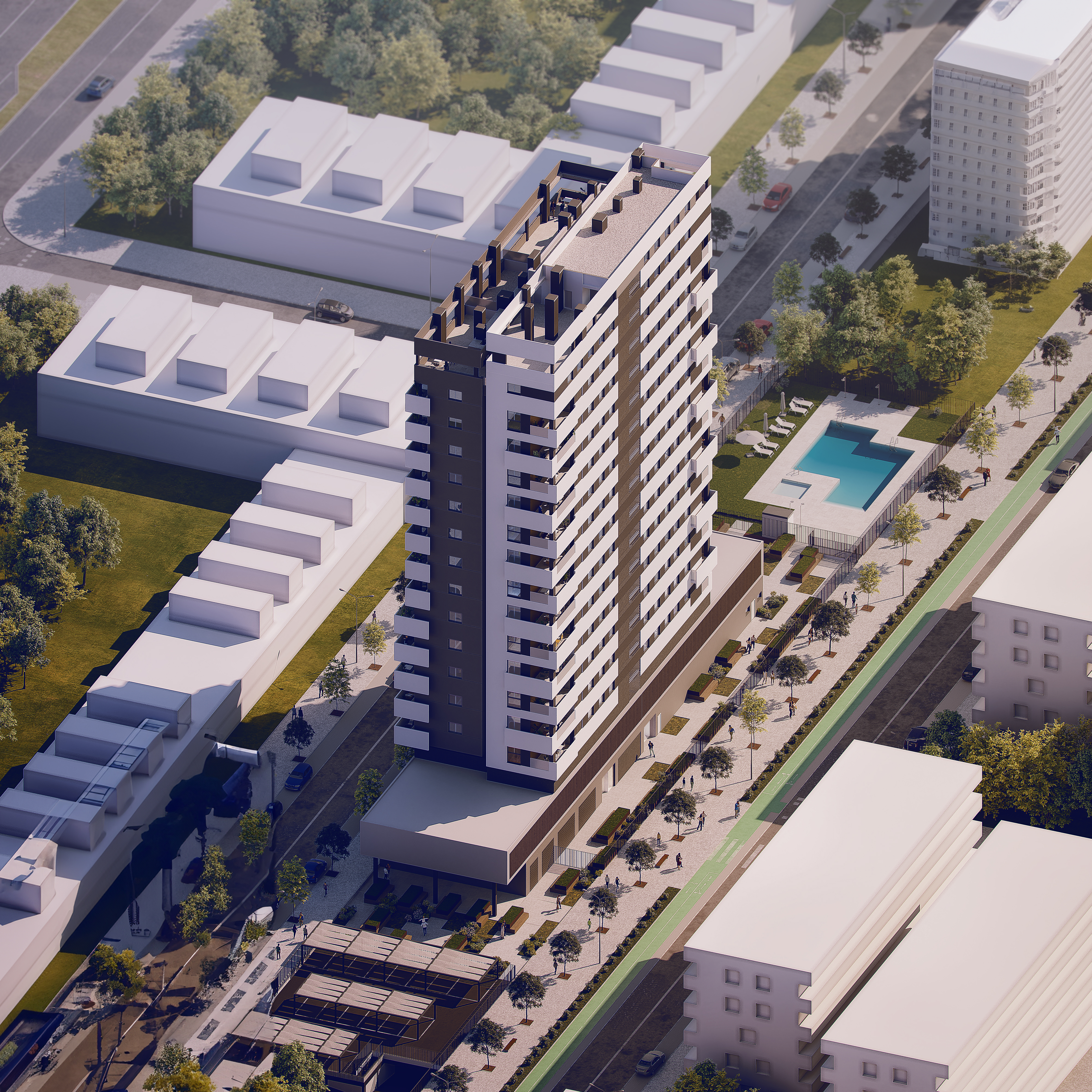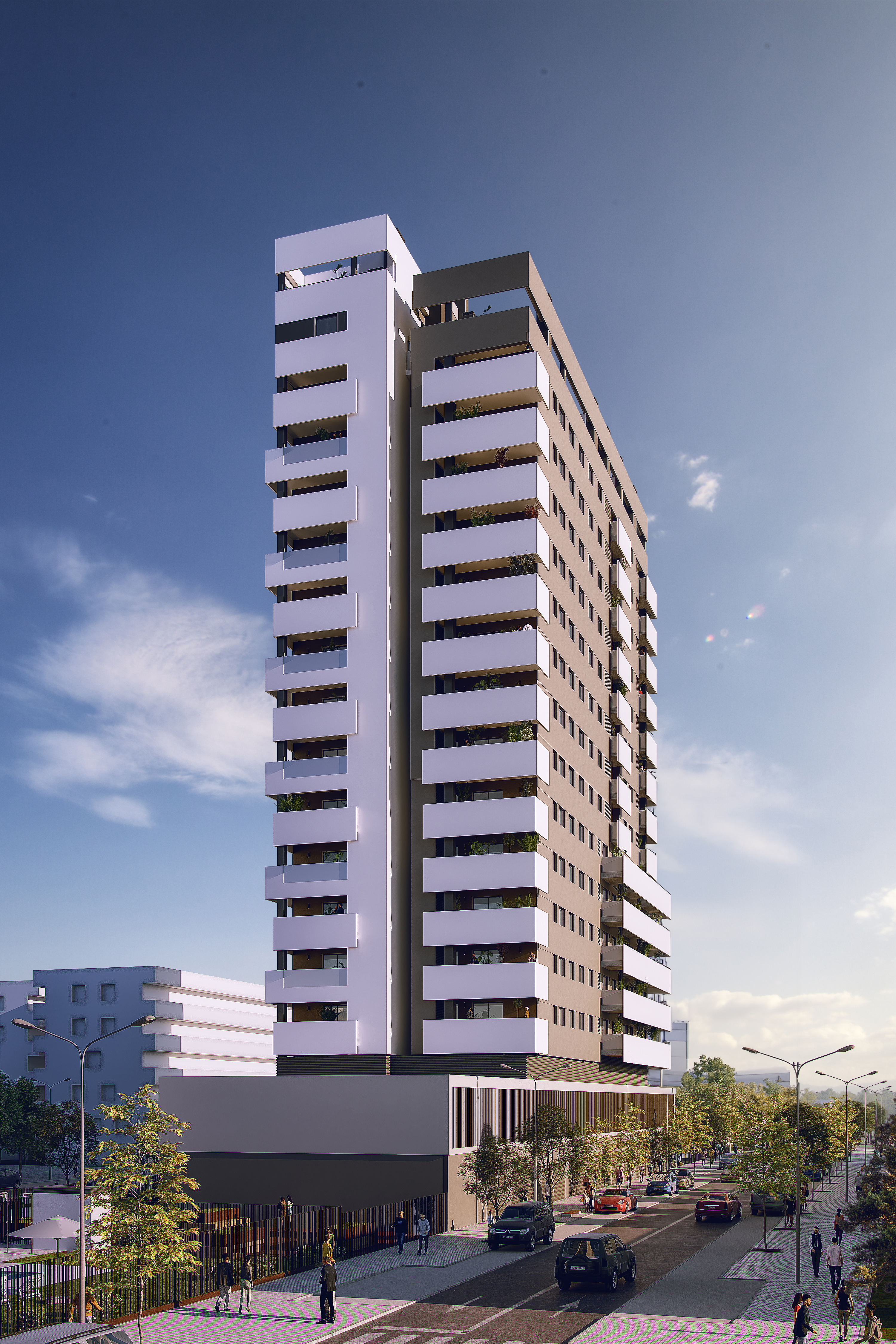 El edificio final así configurado contará con una parte residencial y otro terciario distribuido en 17 plantas, que supondrán 73 viviendas, en un barrio sostenible de más de 67 hectáreas que va a regenerar medioambientalmente este nuevo sector de Sevilla.