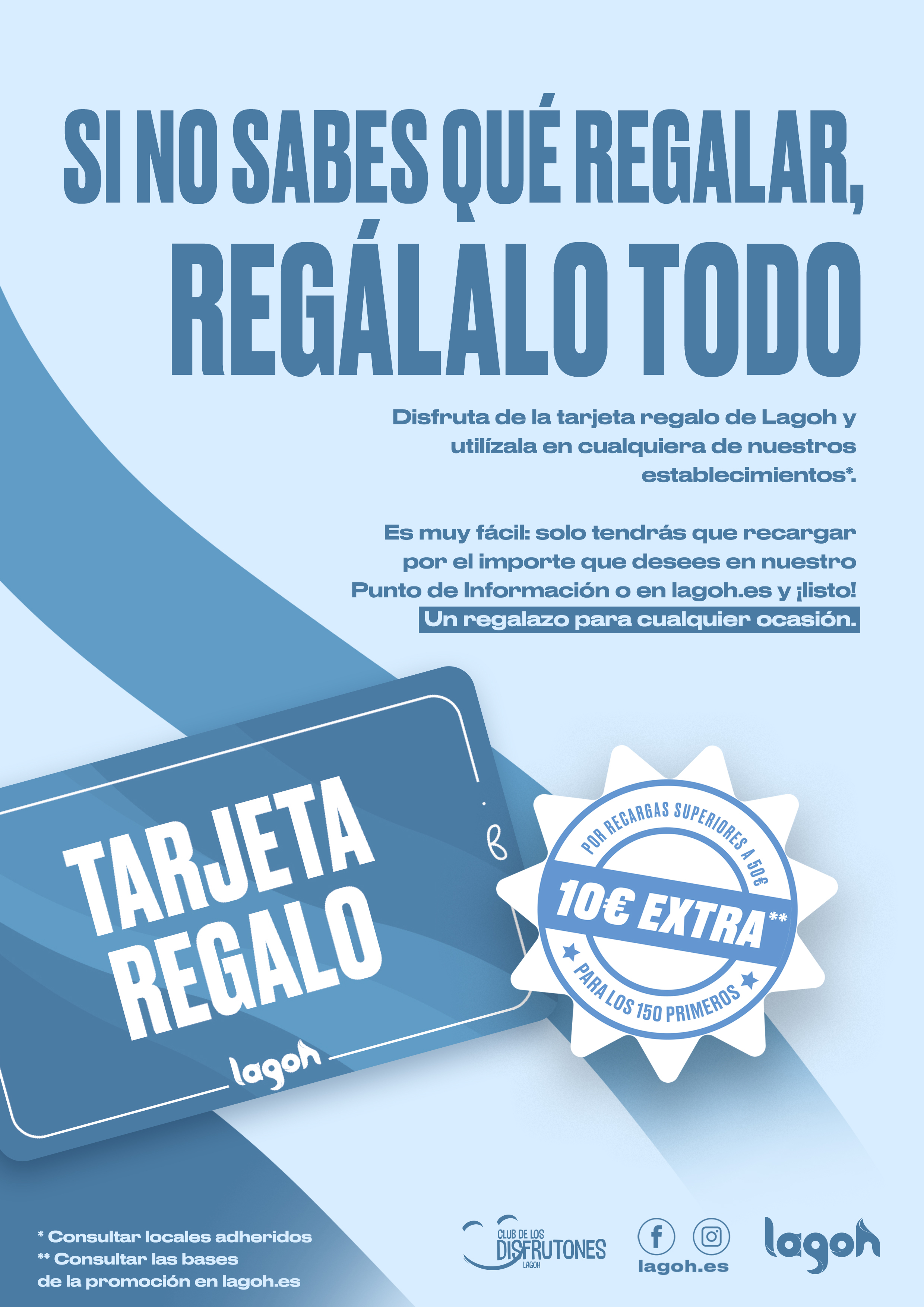 Con la presentación de esta tarjeta, Lagoh busca proporcionar una ventaja para todas aquellas personas que desean realizar un regalo. La persona que reciba como obsequio una de estas Tarjetas Regalo podrá utilizarla para realizar compras de manera cómoda, rápida y sencilla en la totalidad de tiendas, restaurantes y locales de ocio del centro comercial.