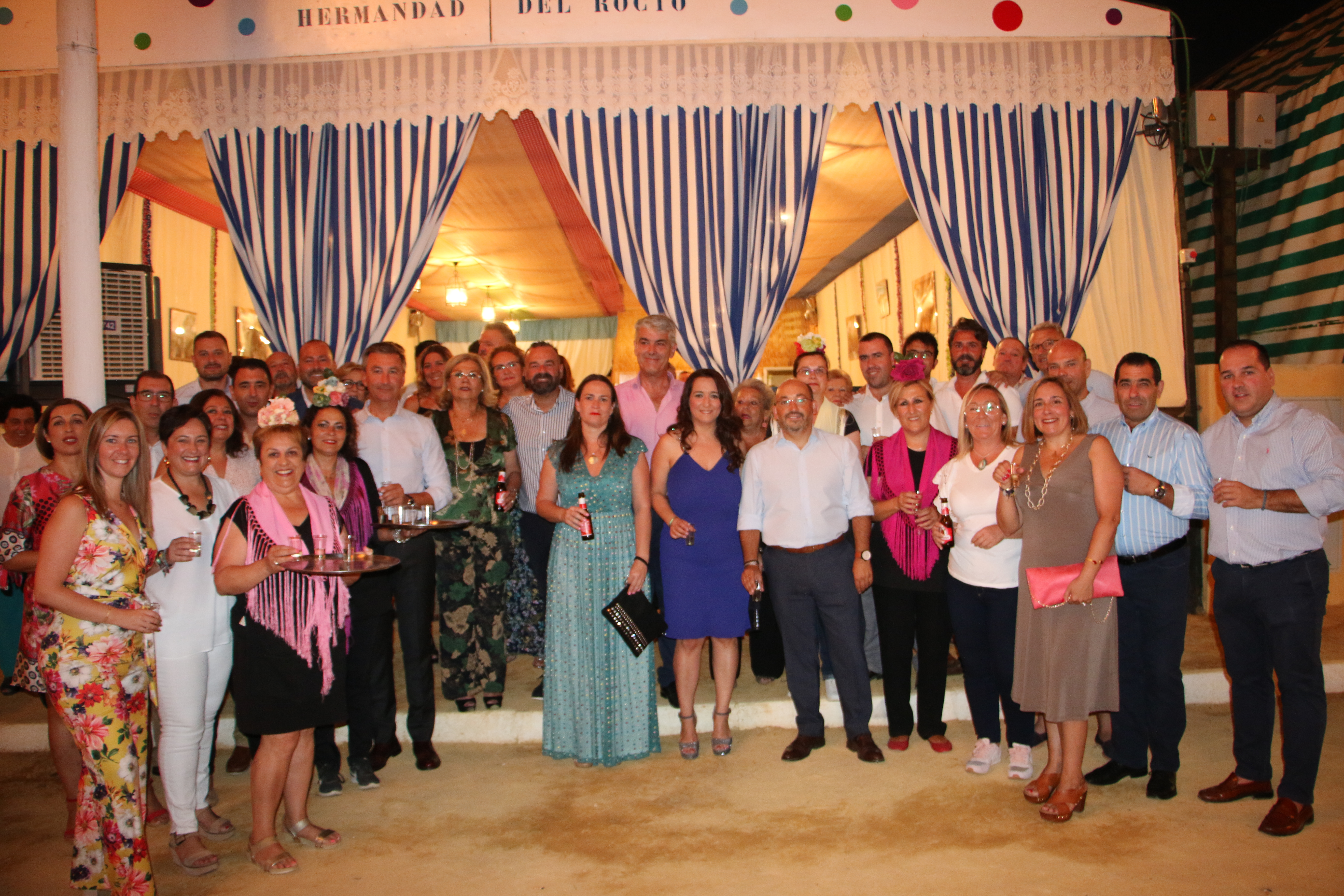 Salteras, 14 de agosto de 2019. Salteras celebró anoche el alumbrado de su Feria en un acto que estuvo presidido por el alcalde, Antonio Valverde Macías, y que tuvo lugar en la caseta de la Hermandad del Rocío, con el fin de celebrar los 25 años de su primer camino a Almonte. Una veintena casetas componen el recinto ferial saltereño, situado junto a la Avenida de Andalucía. Salteras se prepara así para vivir intensamente su Feria y Fiestas en Honor al Corpus Christi.