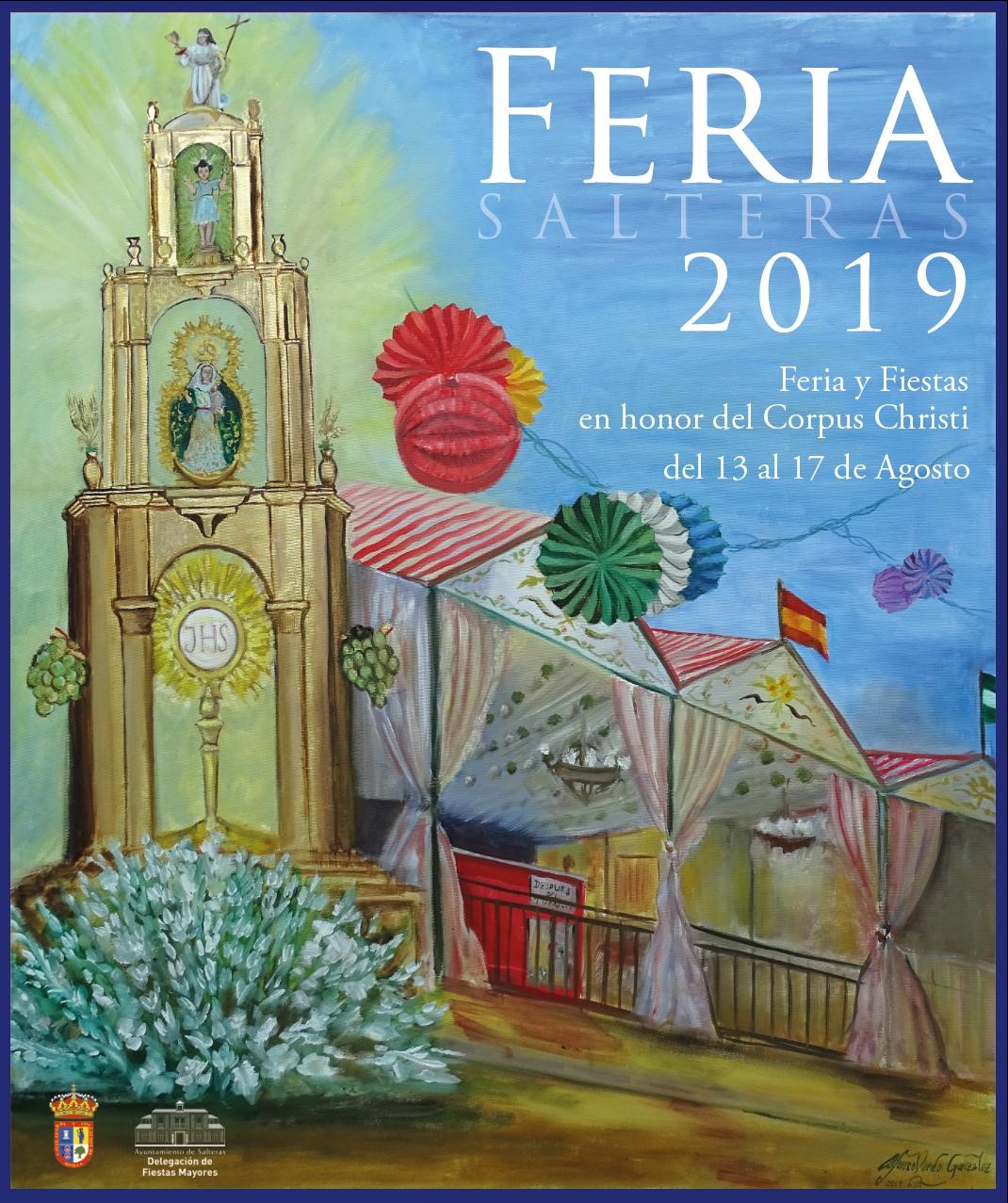 La Feria de Salteras, que cada año revalida una excelente y creciente asistencia de público por su amplio y variado programa de actividades, es una de las de mayor tradición y arraigo en el Aljarafe y la provincia de Sevilla. Tiene la particularidad de celebrarse en honor al Corpus Christi, que procesiona por las calles del municipio el 15 de agosto, festividad de la Asunción de la Virgen.