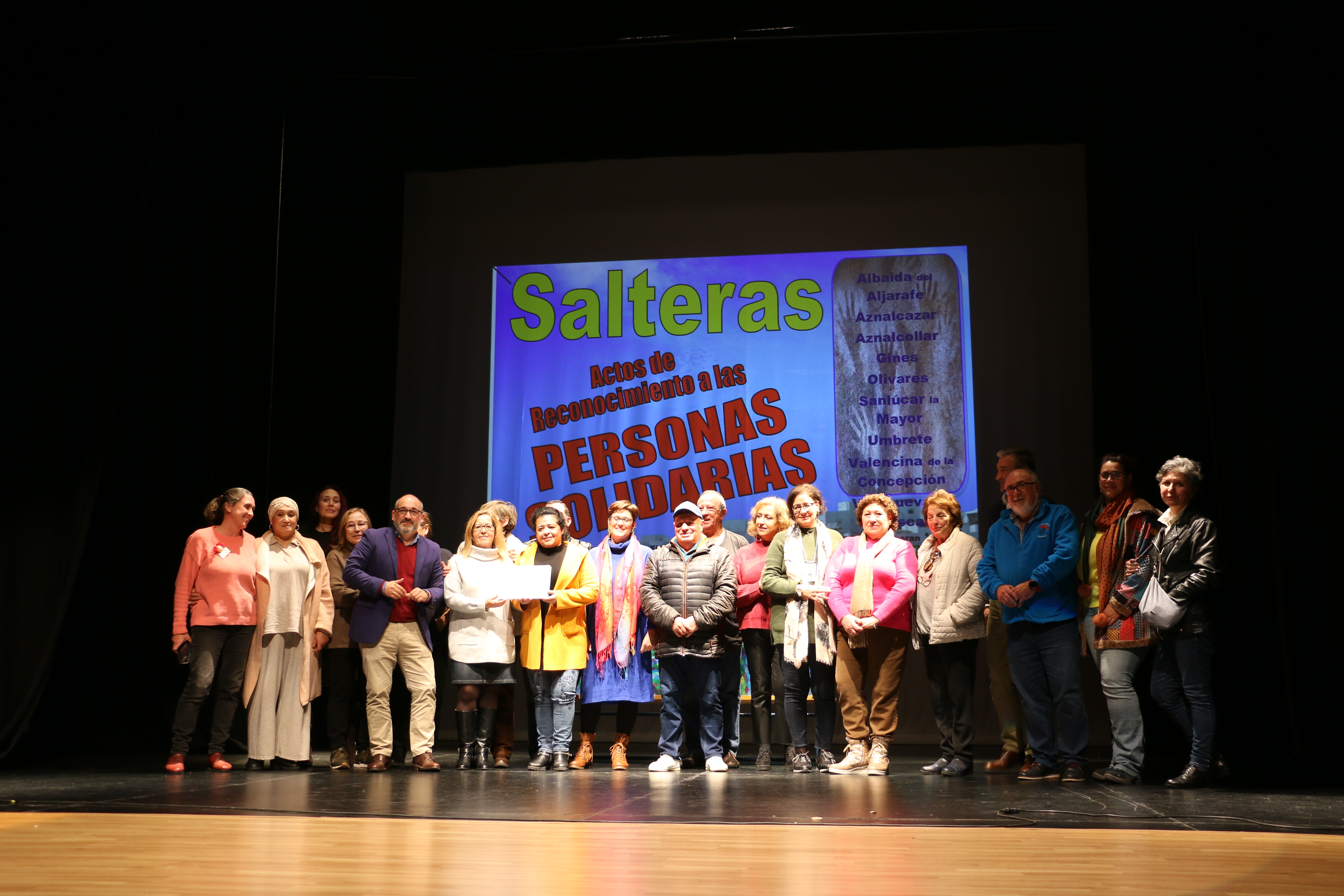 El acto institucional se llevó a cabo en el Teatro Municipal, donde el ayuntamiento de Salteras se esforzó por crear un ambiente cálido y acogedor que reflejara el reconocimiento merecido para aquellos cuyas acciones han dejado una huella significativa en la comunidad. El acto contó con la participación de los diferentes alcaldes que uno a uno fueron presentando a sus homenajeados quienes tras la recepción de la placa conmemorativa expresaron a un público emocionado su gratitud y la necesidad que siempre han sentido de ayudar más y más en sus localidades a que la vida sea tal y como decían “un poquito mejor”. Se presentaron testimonios conmovedores de aquellos que han sido beneficiarios directos de este reconocimiento, historias personales reales que sirvieron como recordatorio del enorme impacto positivo que puede tener una acción solidaria, incluso en las situaciones más difíciles. El público presente no pudo evitar conmoverse al escuchar relatos de superación, solidaridad y esperanza, arrancando en aplausos y vítores en numerosas ocasiones.