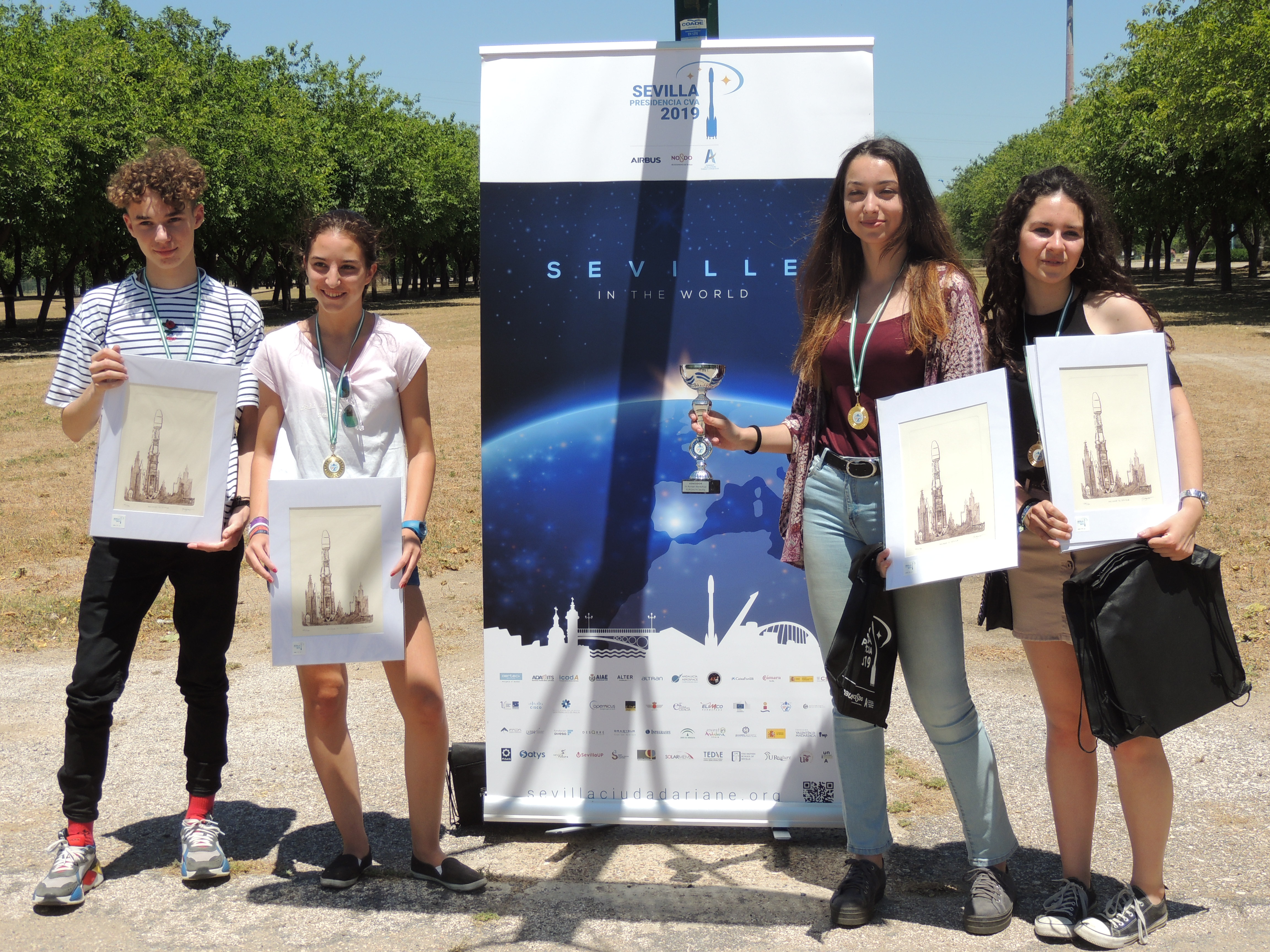Sevilla, 25 de mayo de 2019. Sevilla ostenta durante todo el 2019 la presidencia de la Comunidad de Ciudades Ariane, asociación sin ánimo de lucro formada por las principales ciudades del sector aeroespacial. Gracias a la Asociación EUROAVIA Sevilla, hoy se ha celebrado, muy cerca de la Escuela de Ingenieros de la Universidad de Sevilla el concurso de lanzamiento de cohetes con el que se cierra la RoWo Competition que comenzó el pasado mes de marzo. El premio ha consistido en una copa para el equipo ganador y una medalla para cada miembro de los 3 equipos primeros además de un diploma.