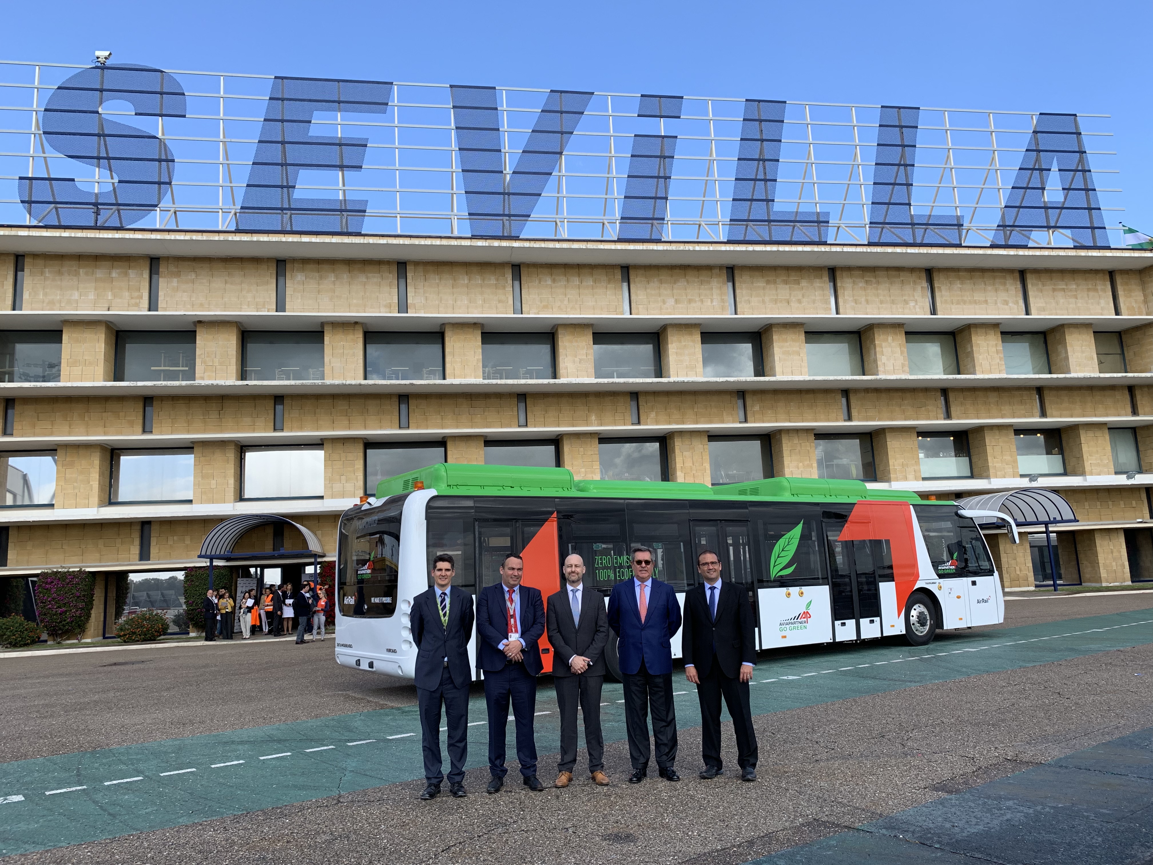 AVIAPARTNER Y AIR RAIL PRESENTAN EN SEVILLA EL PRIMER AUTOBÚS AEROPORTUARIO ELÉCTRICO QUE OPERA EN ESPAÑA
