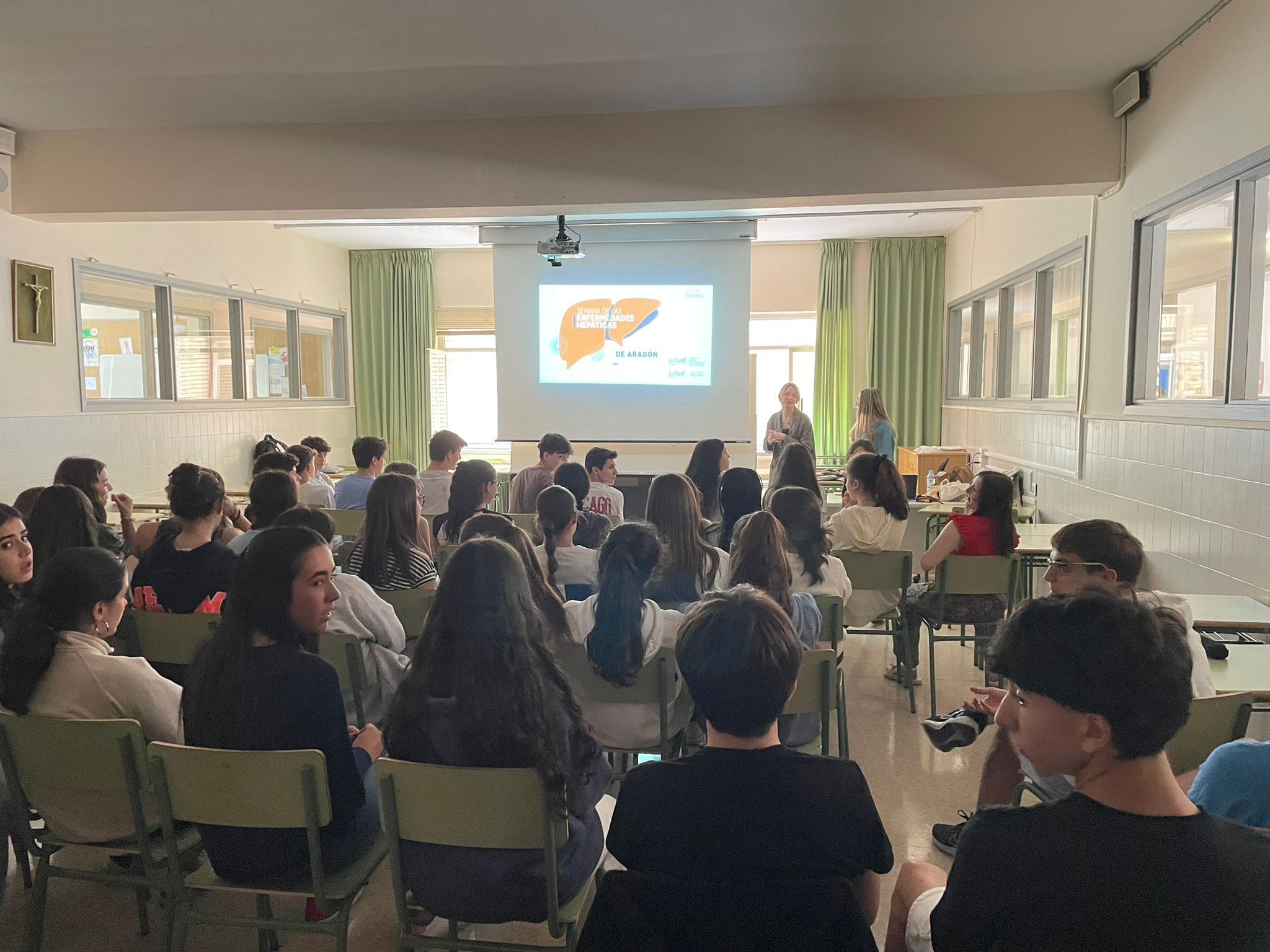 Pie de foto: Charla informativa ofrecida el miércoles 12 de junio a alumnos del Colegio Romareda (Agustinos Recoletos) de Zaragoza por médicos residentes del HU Lozano Blesa.