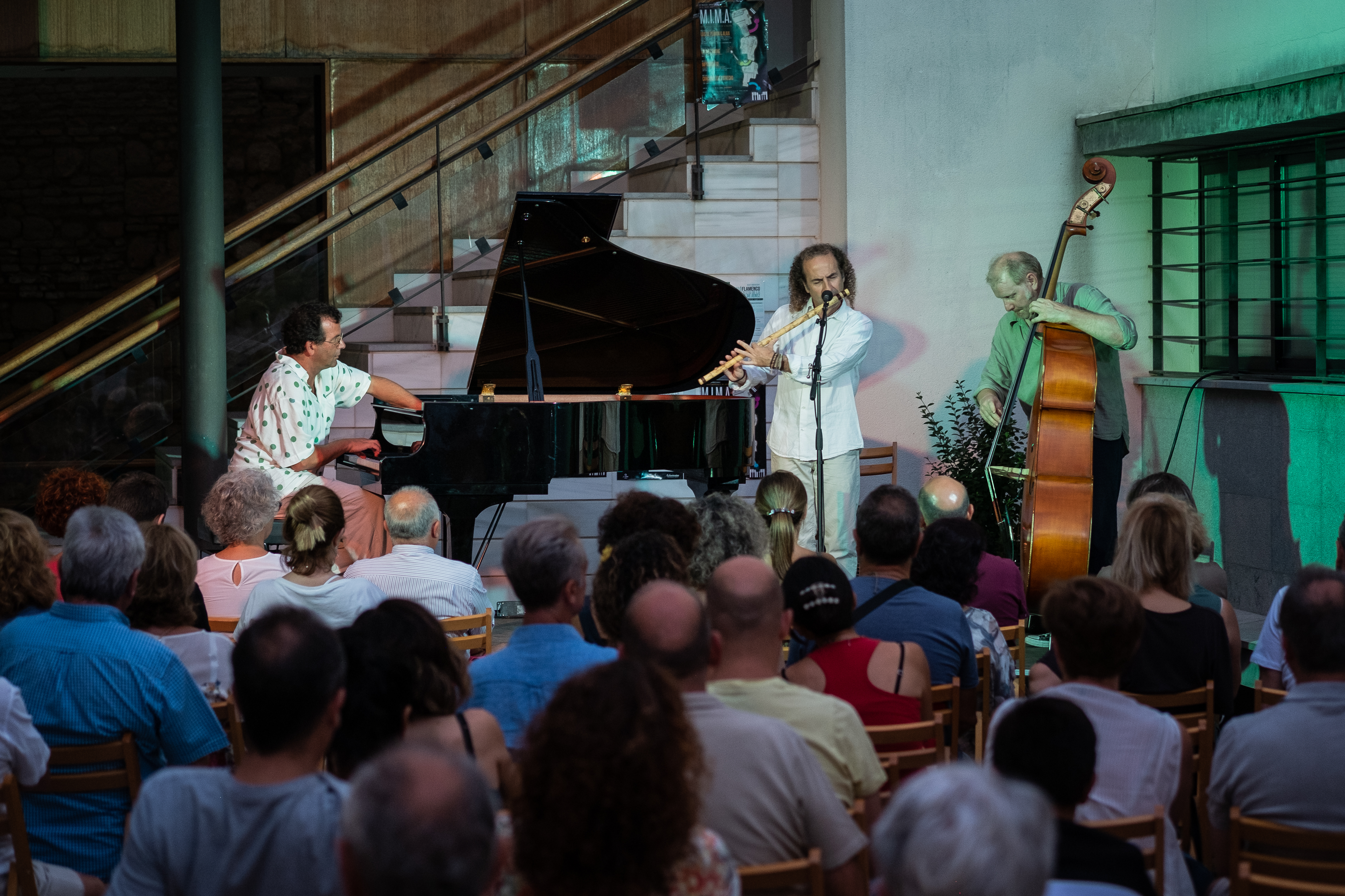 Músicas Improvisadas, dentro de la segunda edición del ciclo ‘Caló Flamenco a la Fiesta de la Bulería’ y que viene sucediéndose cada miércoles de julio en el Museo Arqueológico de Jerez. Entre músicas improvisadas y músicas soñadas, el público que ha abarrotado un miércoles más el patio Sarish Shiduna ha asistido con entusiasmo al encuentro de dos instrumentistas con una larga trayectoria de proyectos creativos dentro del lenguaje del flamenco y el jazz.