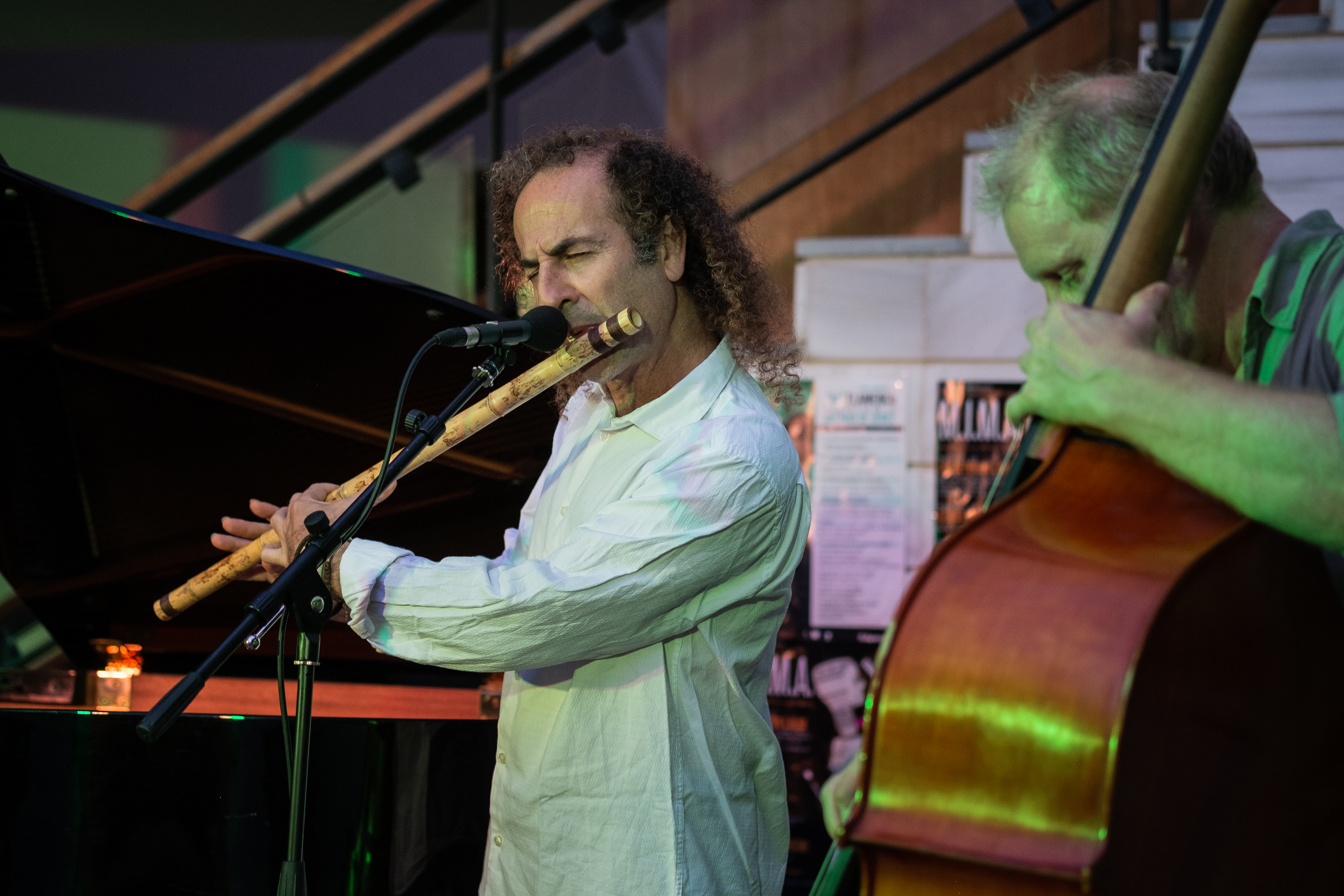 Jerez, 25 de julio Los músicos gaditanos Carmelo Muriel y Javier Galiana han brindado en la noche de este pasado miércoles, un excelente recital con ‘Improvisatio’, la penúltima entrega del festival MIMA. Contaron además con la colaboración especial de Piet Verbist, al contrabajo, solista con proyectos como líder “Zigomatic” “Mamutrio” y el ultimo “Suite reunión”. Toda la actuación fue fruto de la más absoluta improvisación tal y como había destacado Carmelo Muriel y por tanto un espectáculo único e irrepetible.