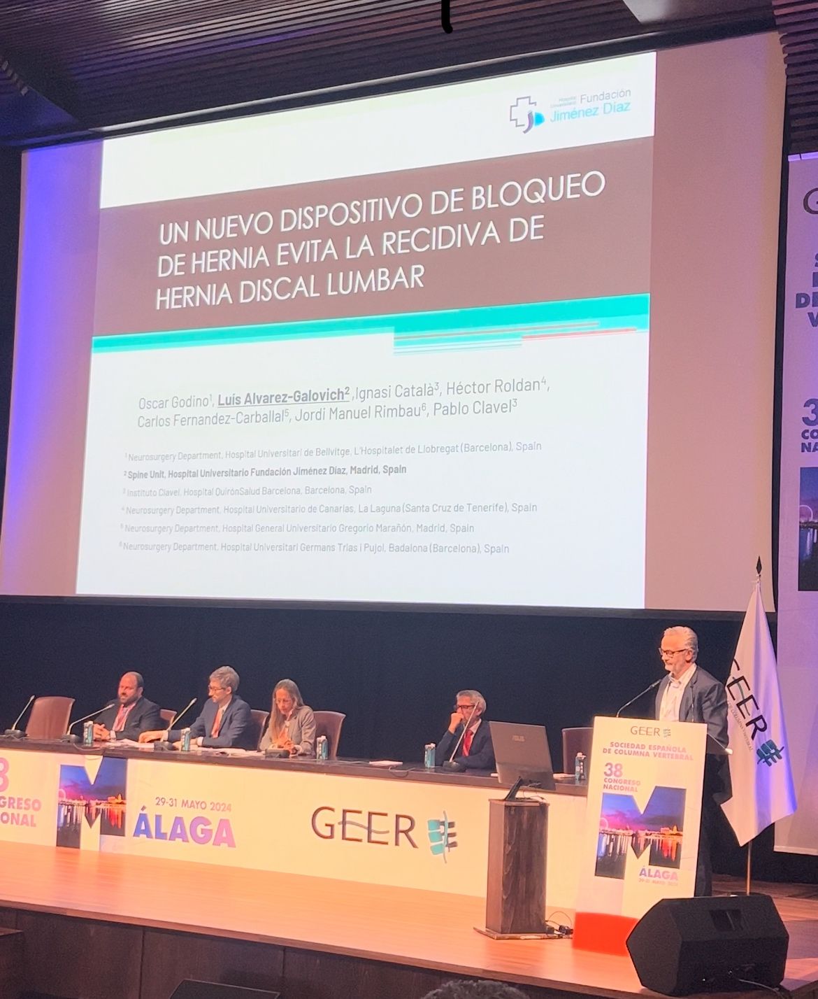 “La hernia de disco es un proceso que habitualmente se trata de forma conservadora pero que en ocasiones necesita de una cirugía. Existe un grupo de pacientes de alto riesgo en el cual esa cirugía puede fallar y volver a producirse una nueva re-herniación”, explica el presidente del GEER, Luis Álvarez Galovich. “Entre seis hospitales hemos realizado este estudio para evaluar este sistema de retención de la hernia que evite es problema de re-herniación. Los resultados son muy buenos. Esto es una fase inicial, queda todavía evaluar las mejoras del dispositivo para poder aplicarlo como uso continuado”, añade Álvarez Galovich.