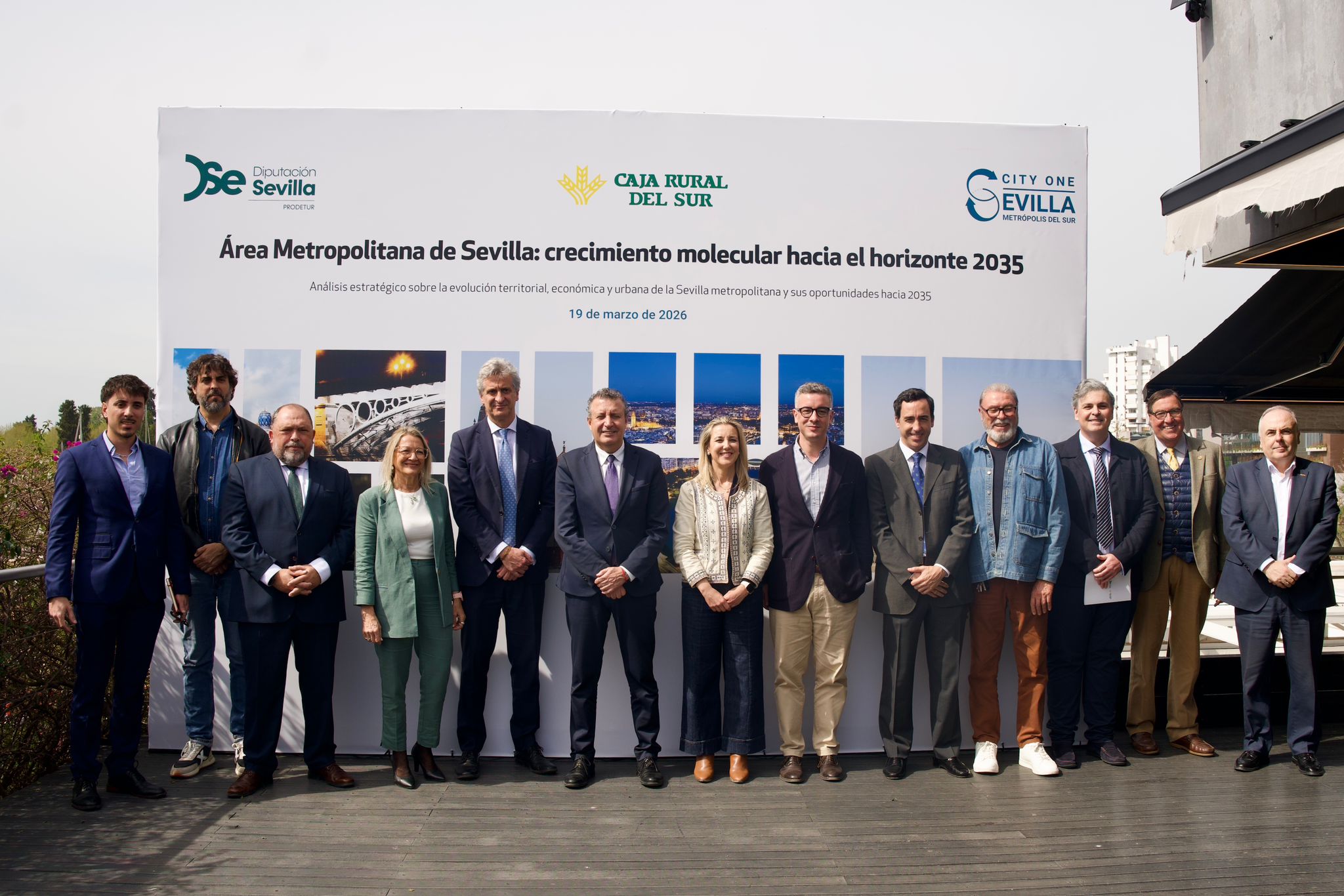 Este jueves, 19 de marzo ha tenido lugar la presentación, en la capital hispalense, del informe “Área Metropolitana de Sevilla: crecimiento molecular hacia el horizonte 2035”, elaborado por Sevilla City One, Metrópolis del Sur, con el patrocinio de la Diputación de Sevilla, a través de Prodetur, y Caja Rural del Sur.