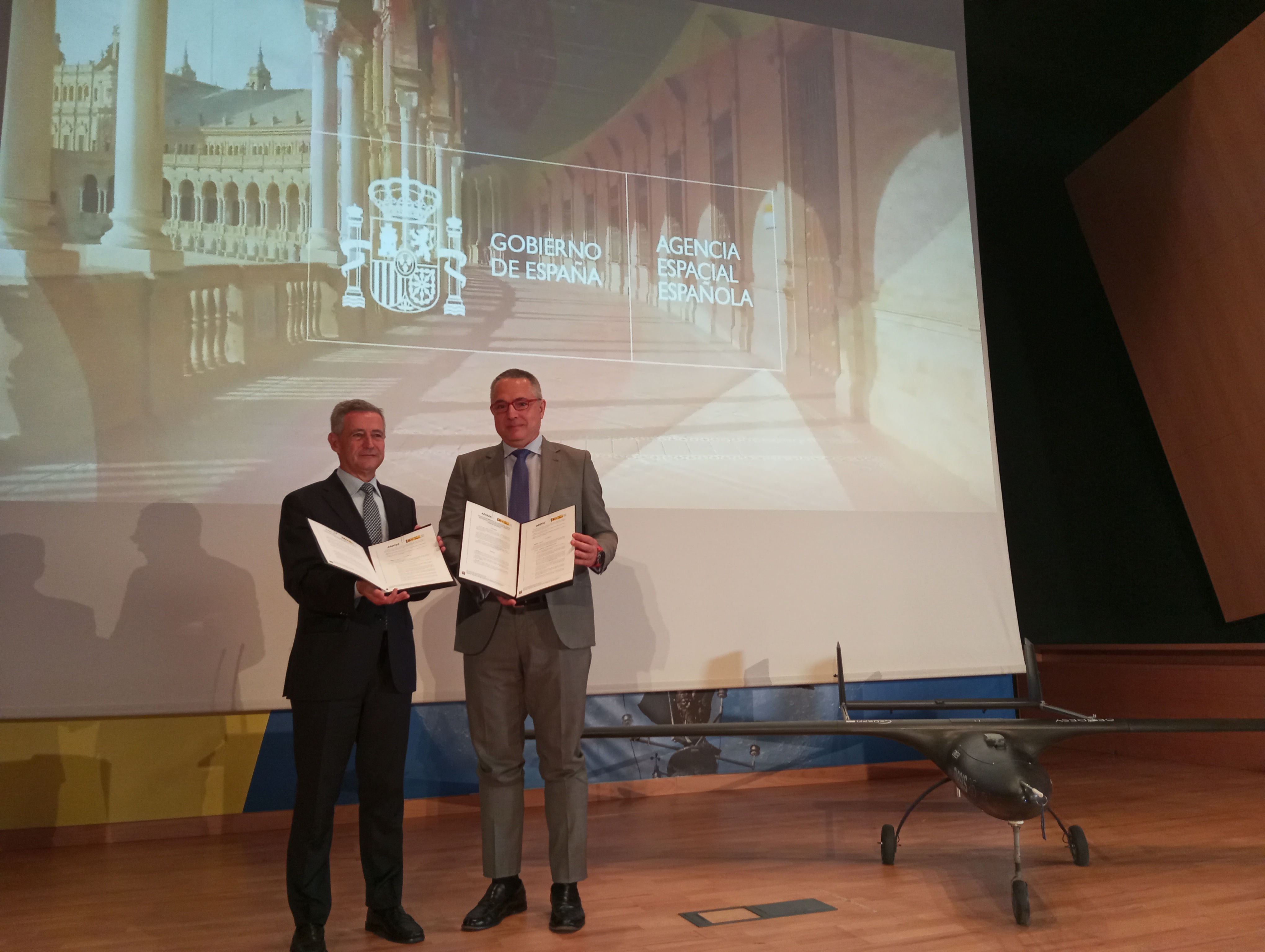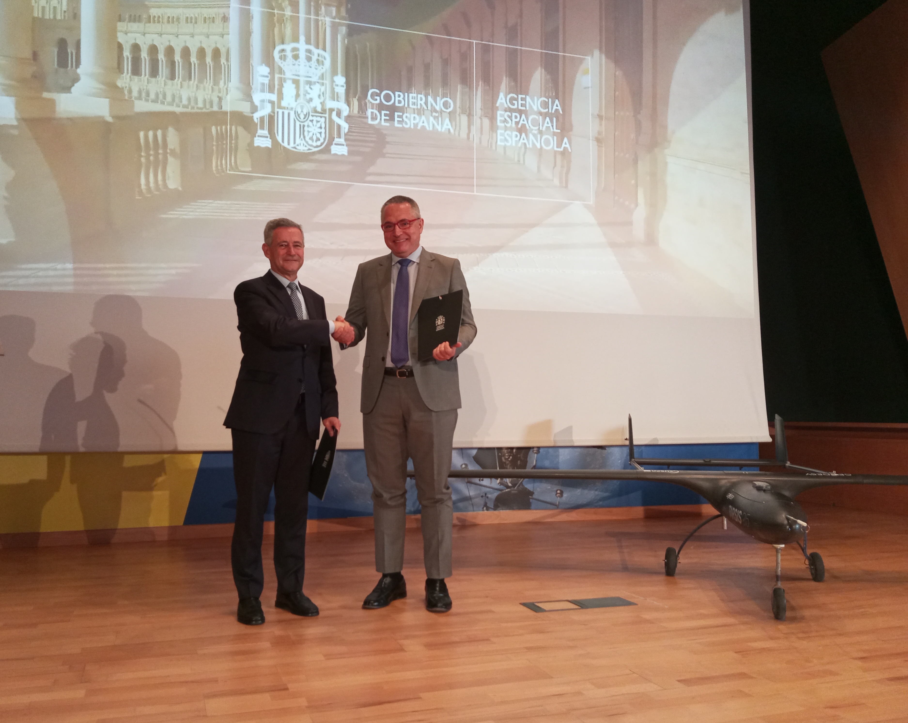 Hoy se ha celebrado en la sede de la Agencia Espacial Española (AEE), en Sevilla, el acto de cesión de un sistema aéreo no tripulado TARSIS-25, diseñado y fabricado íntegramente por la compañía española especializada en tecnología aeroespacial y de defensa AERTEC.
