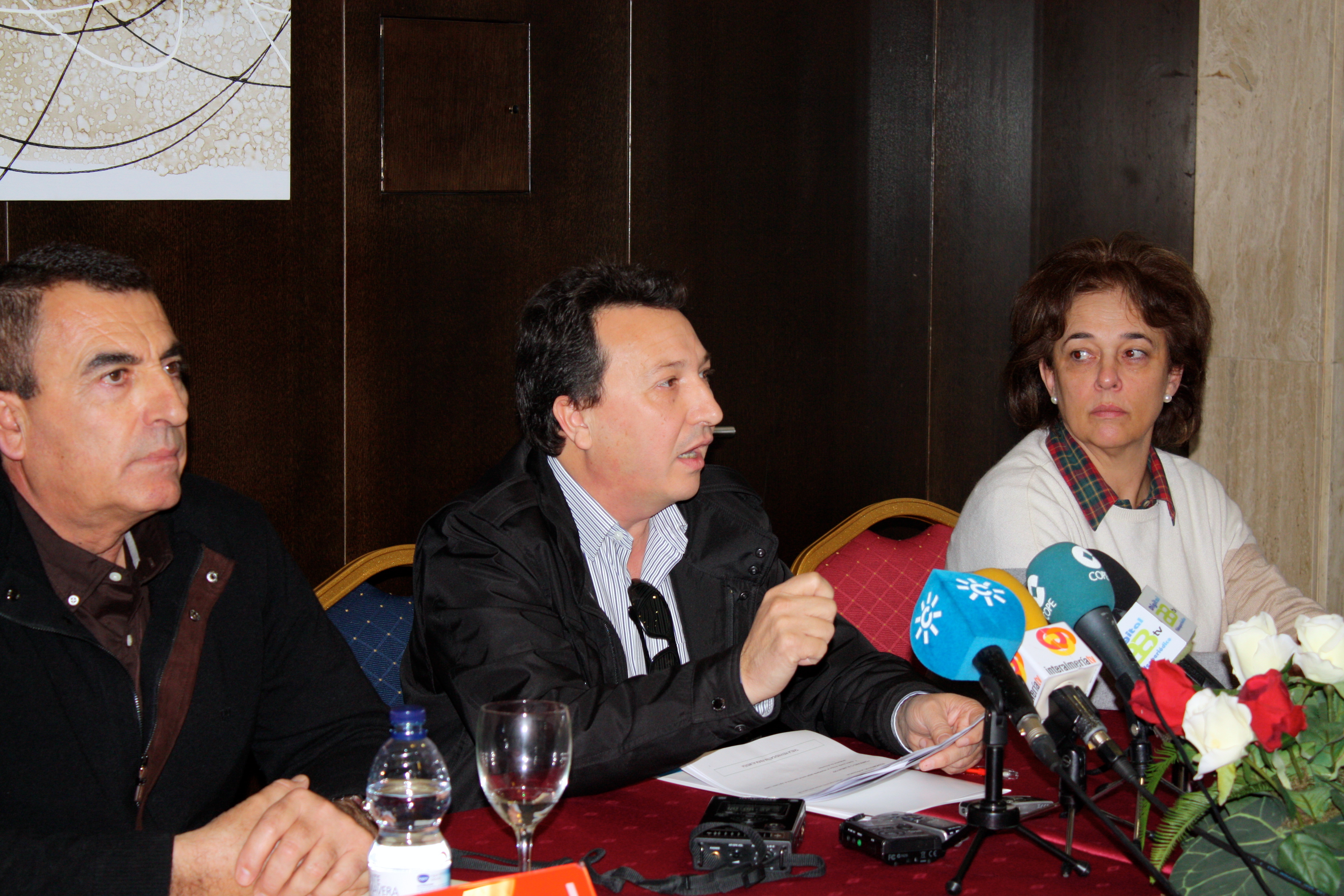 Almería, 12 de febrero de 2014.- La presidenta de Feragua, Margarita Bustamante, José Antonio Fernández, Presidente de la Federación de Regantes de Almería (FERAL), y Matías Gómez (vicepresidente de AREDA), han celebrado hoy en Almería un encuentro con regantes de la provincia, a los que han llamado a la movilización, convocándolos a una concentración masiva ante la sede de la Delegación del Gobierno en Andalucía, el próximo 26 de febrero, en protesta por la subida de los costes eléctricos, una iniciativa a la que, además de Feragua, ya se han adherido la organización de regantes gaditanos (Coreca), los onubenses (Corehu) y las organizaciones agrarias Asaja, Coag, Upa, Faeca y Grupo Remolachero. Protesta que se producirá de manera sincronizada con el resto de regantes de España, que se concentrarán igualmente a las puertas de las respectivas delegaciones de gobiernos regionales, coordinados por Fenacore, la Federación Nacional de Comunidades de Regantes. En el encuentro con los regantes, celebrado en la sede de la Comunidad de Regantes Cuatro Vegas de Almería, han participado los presidentes de las principales comunidades de regantes de la provincia.