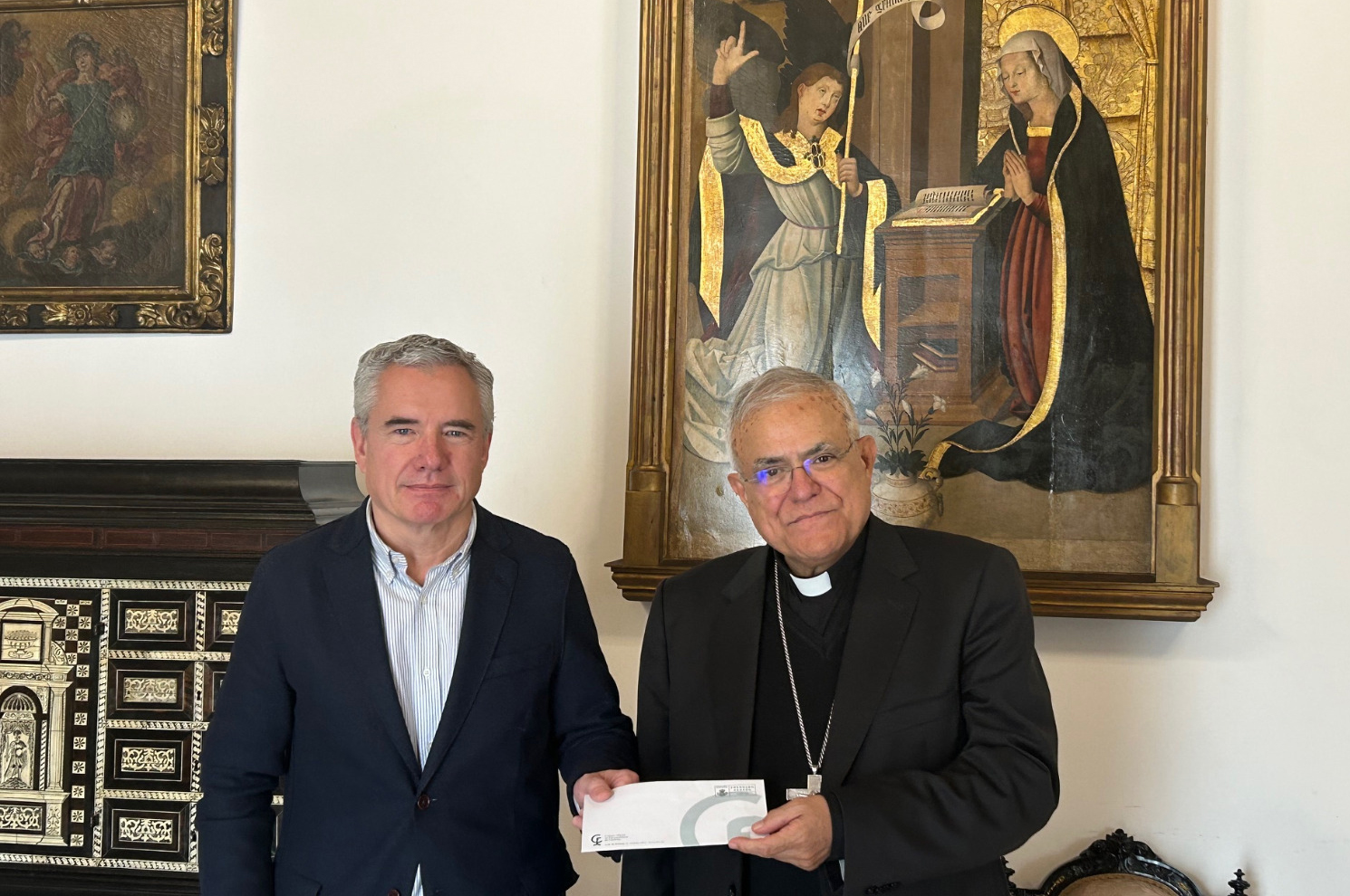 • El donativo ha sido entregado al obispo de la Diócesis de Córdoba, Demetrio Fernández, de manos del presidente del Colegio de Farmacéuticos de Córdoba, Rafael Casaño, el tesorero, Rafael Millán, y el secretario, Antonio Ortega.