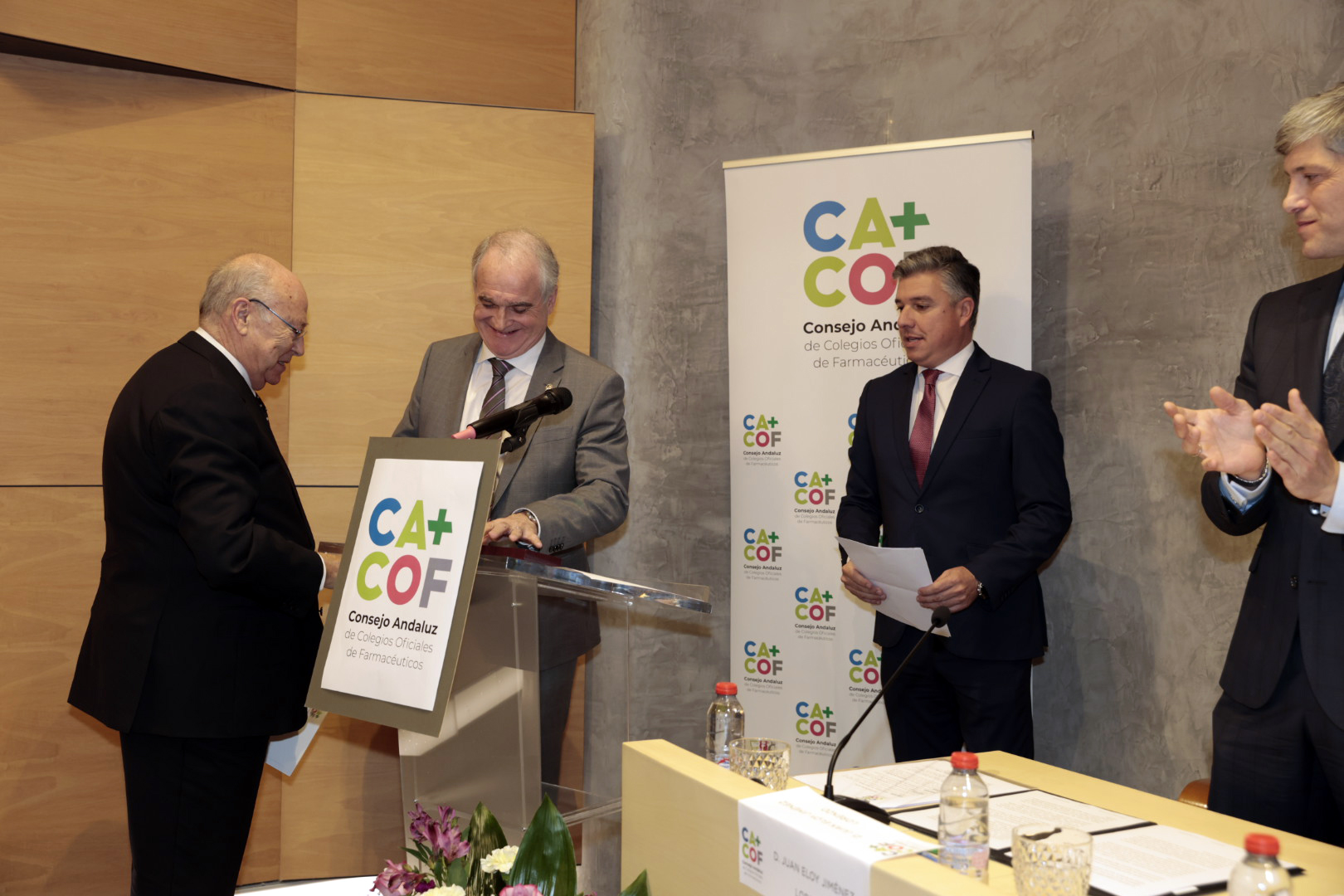 El acto ha contado con la participación del delegado territorial de la Consejería de Salud y Consumo en Granada, Indalecio Sánchez-Montesinos; la concejala de Política Social, Familia, Discapacidad y Mayores del Ayuntamiento de Granada, Amparo Arrabal; el presidente del CACOF, Antonio Mingorance; o el decano de la Facultad de Farmacia de la Universidad de Granada, Manuel Sánchez, entre otras autoridades. Asimismo, han asistido el presidente del Colegio de Farmacéuticos de Granada, Juan Eloy Jiménez, y todos los presidentes de los Colegios de Farmacéuticos de Andalucía, además de otros Consejeros del Pleno del CACOF y varios representantes de la Distribución Farmacéutica.