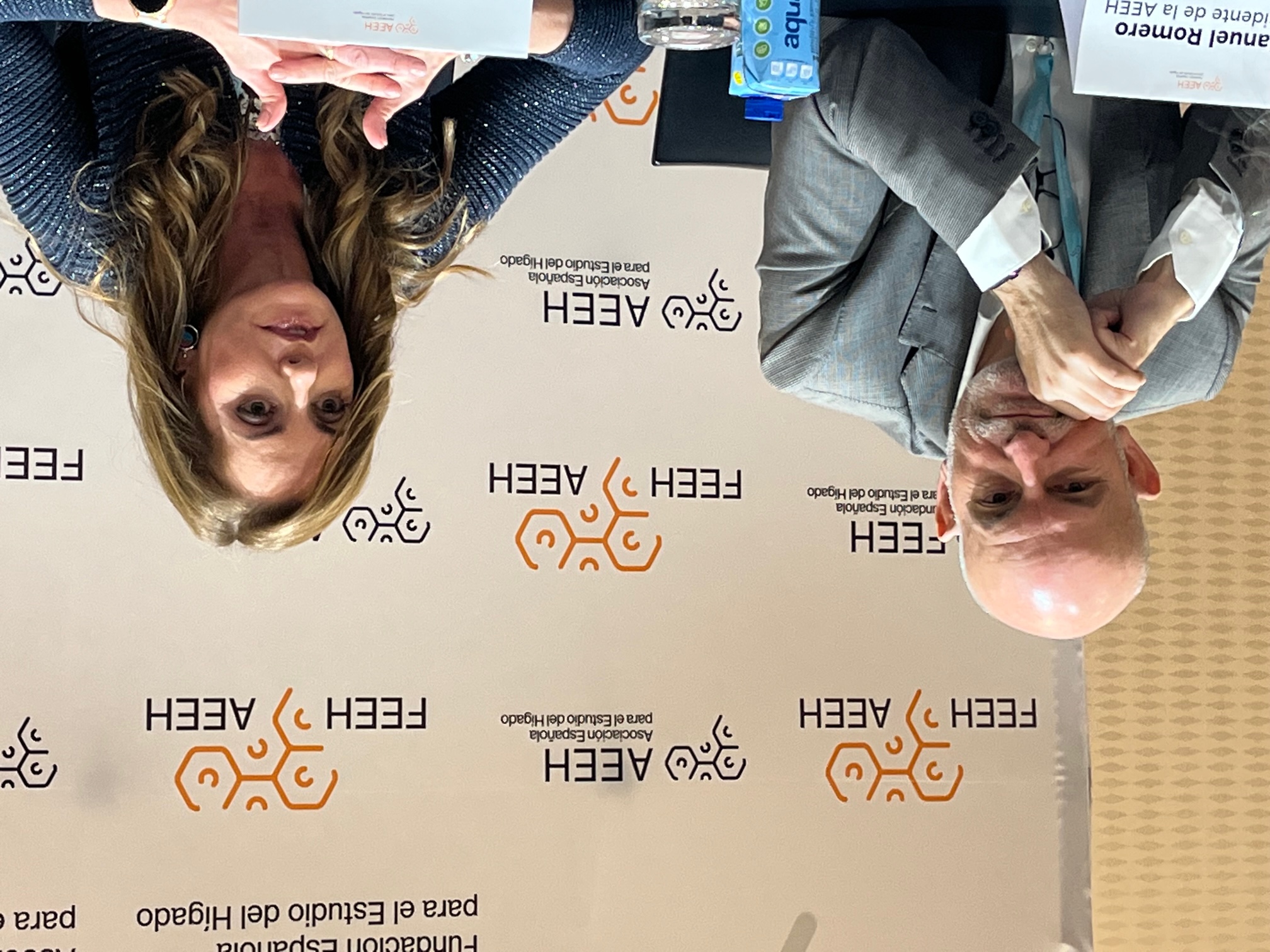 PIE DE FOTO: Manuel Romero y Rocío Aller, presidente y secretaria de la AEEH, durante la atención a medios durante el 49 Congreso de la AEEH en Madrid.