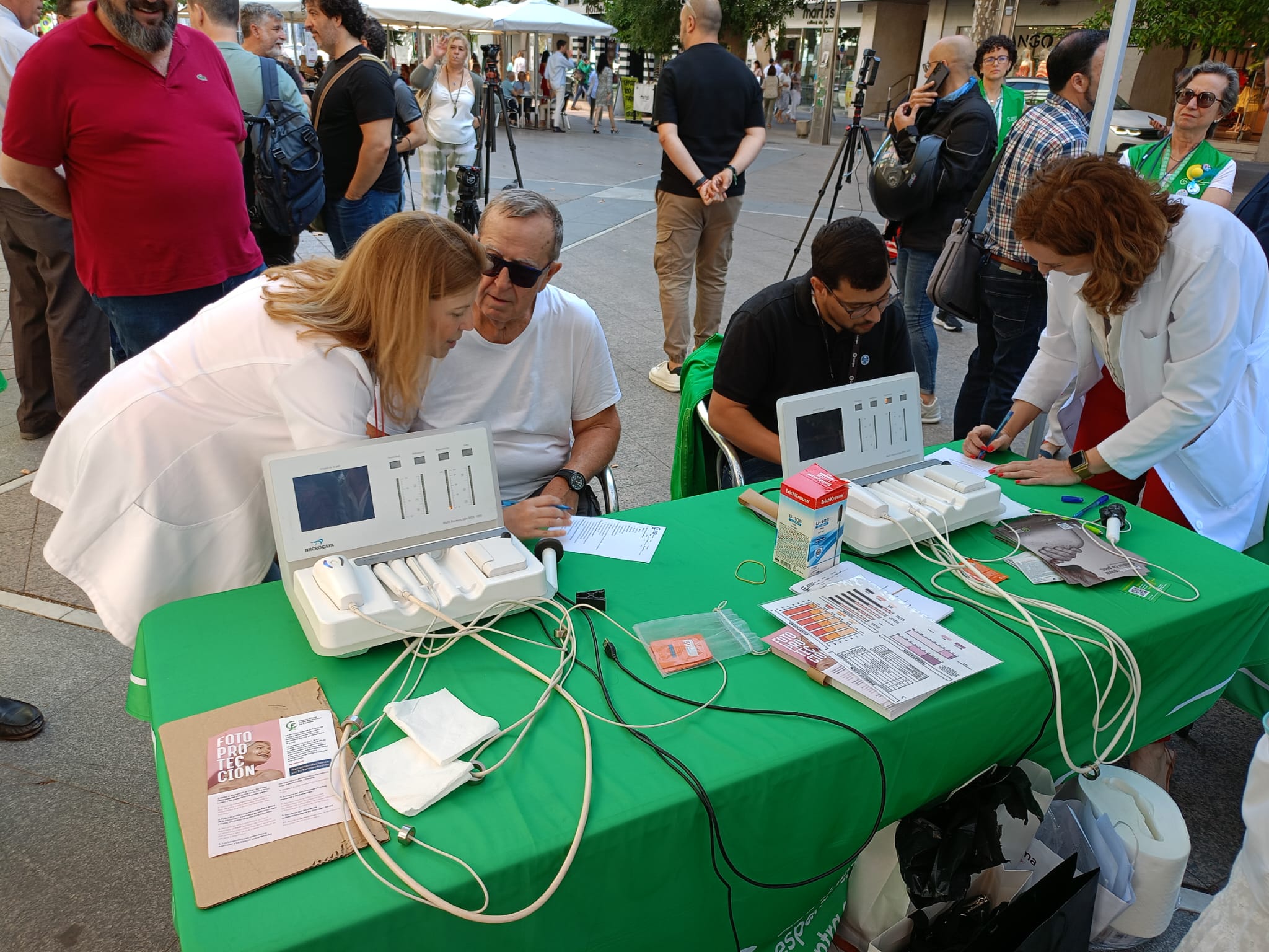 • La AECC de Córdoba y el Colegio de Farmacéuticos de Córdoba han desarrollado una jornada informativa en la Avenida del Gran Capitán en la que han analizado la piel de las personas participantes, a través de dermoanalizadores, y han indicado las principales recomendaciones sobre qué fotoprotectores deben utilizarse y cómo deben aplicarse para el cuidado de la piel ante el sol.
