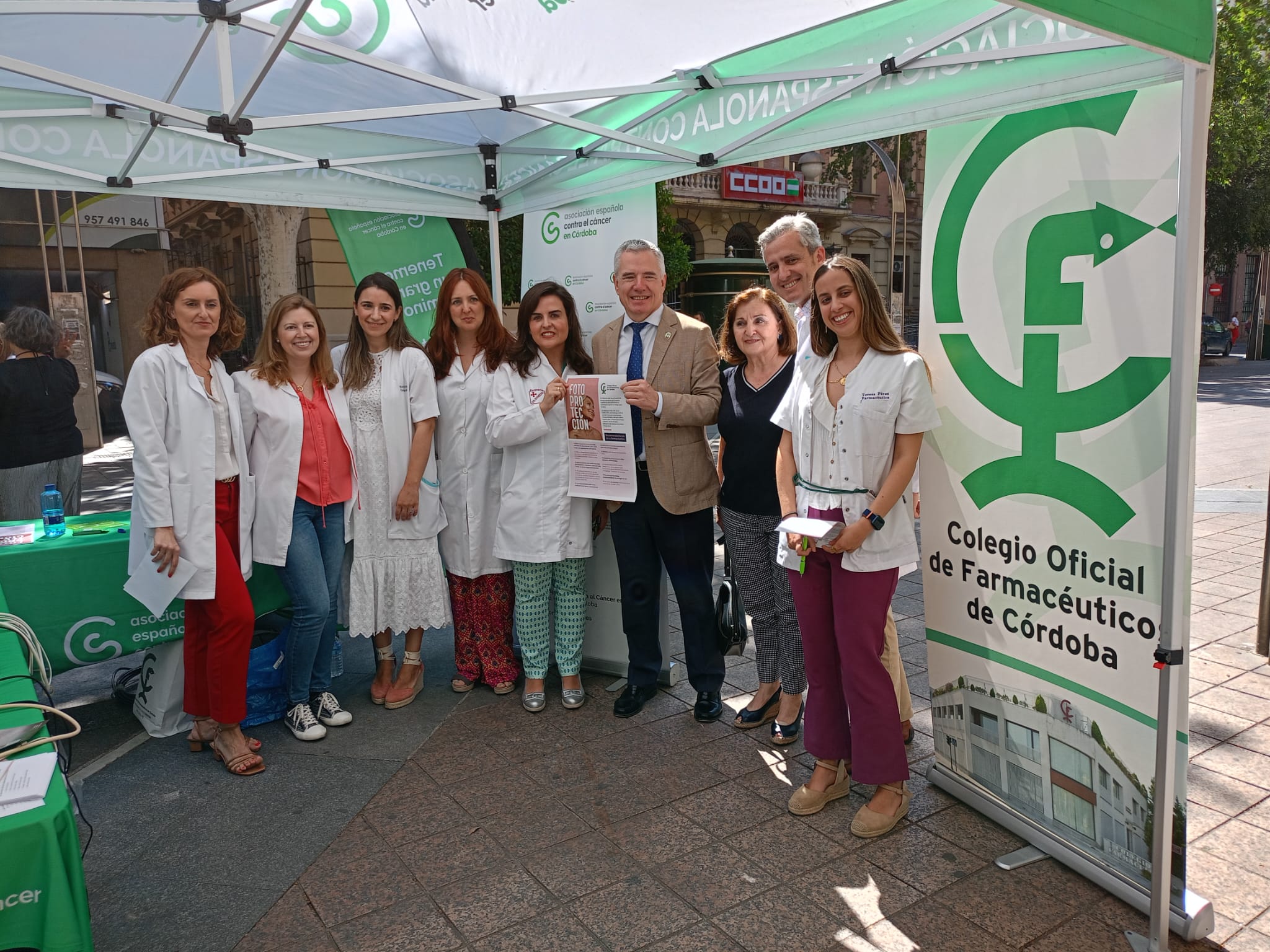 La jornada, realizada a través de una carpa, ha contado con la participación de Rafael Casaño, presidente del Colegio de Farmacéuticos de Córdoba; Mª Auxiliadora Cabanás, presidenta de la AECC de Córdoba; María Jesús Botella, delegada territorial de Salud y Consumo de la Junta de Andalucía; Ana María López, subdelegada del Gobierno en Córdoba, y Elena Grande, vocal de Dermofarmacia del COF Córdoba.