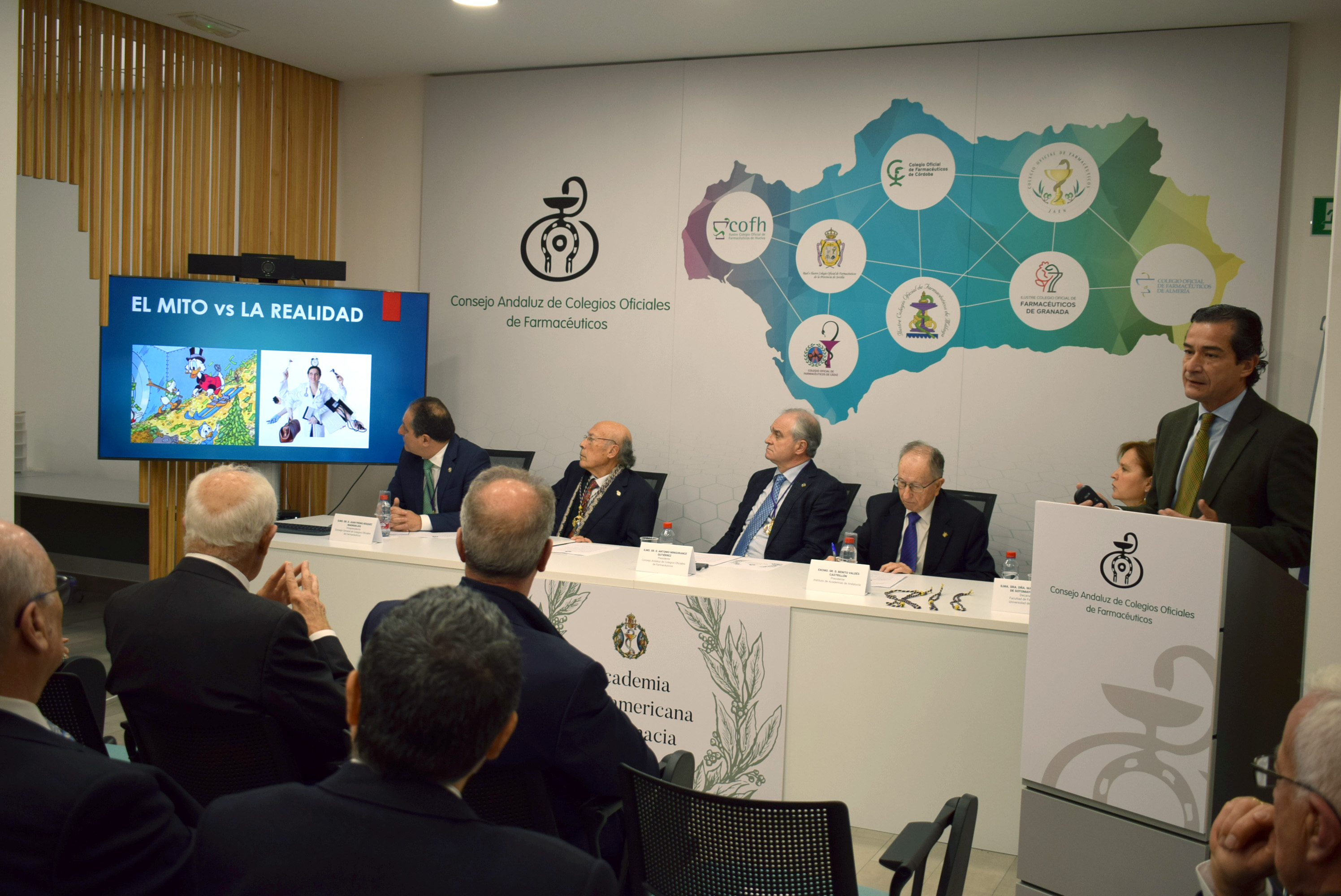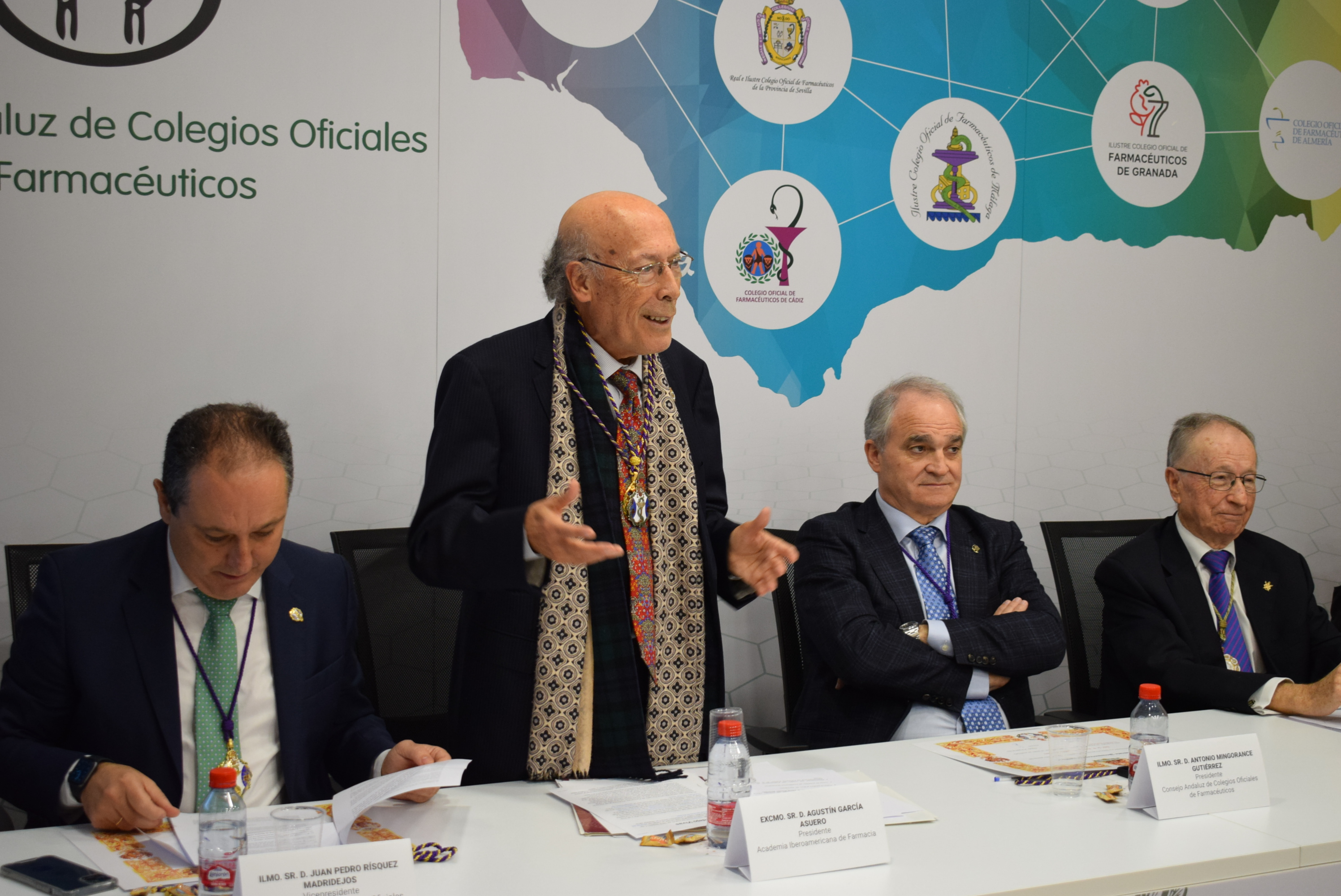 El acto ha estado presidido por Agustín García Asuero, presidente de la Academia Iberoamericana de Farmacia; Antonio Mingorance Gutiérrez, presidente del CACOF; Juan Pedro Rísquez Madridejos, vicepresidente del Consejo General de Colegios Oficiales de Farmacéuticos; Benito Valdés Castrillón, presidente del Instituto de Academias de Andalucía, y María Álvarez de Sotomayor Paz, decana de la Facultad de Farmacia de la Universidad de Sevilla.