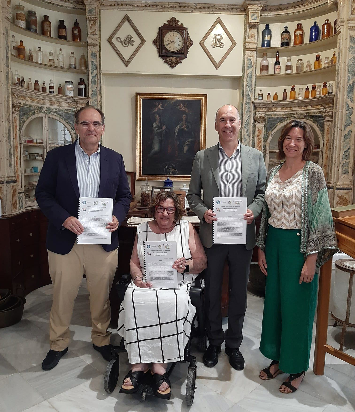 La renovación de este compromiso se ha realizado en el Colegio de Farmacéuticos de Cádiz, a través de la firma de acuerdo entre el presidente de los farmacéuticos gaditanos, Alberto Virués; Pilar Álvarez, presidenta de ALCA; y José Antonio Mas, miembro del Consejo Rector de Bidafarma.