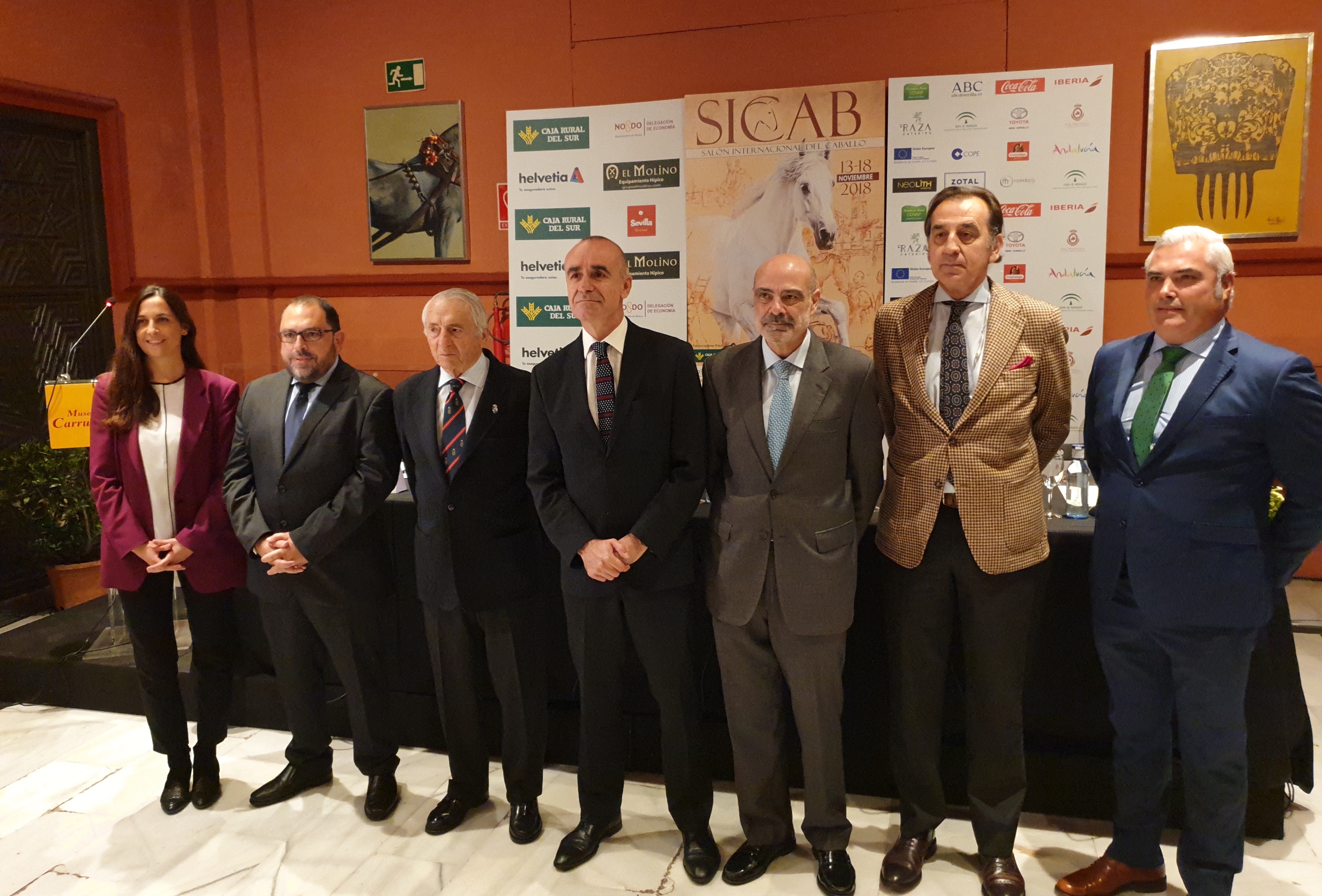 Sevilla, 8 de noviembre de 2018. El Salón Internacional del Caballo, SICAB, apuesta en su 28ª edición por impulsar el Pura Raza Español en mercados internacionales y promover de forma decidida la formación de los profesionales del sector en ámbito nacional. El evento, que acogerá del 13 al 18 de noviembre a 343 ganaderías y 1.077 ejemplares de Pura Raza Española en el Palacio de Exposiciones y Congresos de Sevilla, se ha presentado hoy oficialmente en el Museo de Carruajes de Sevilla, sede del Real Club de Enganches de Andalucía.