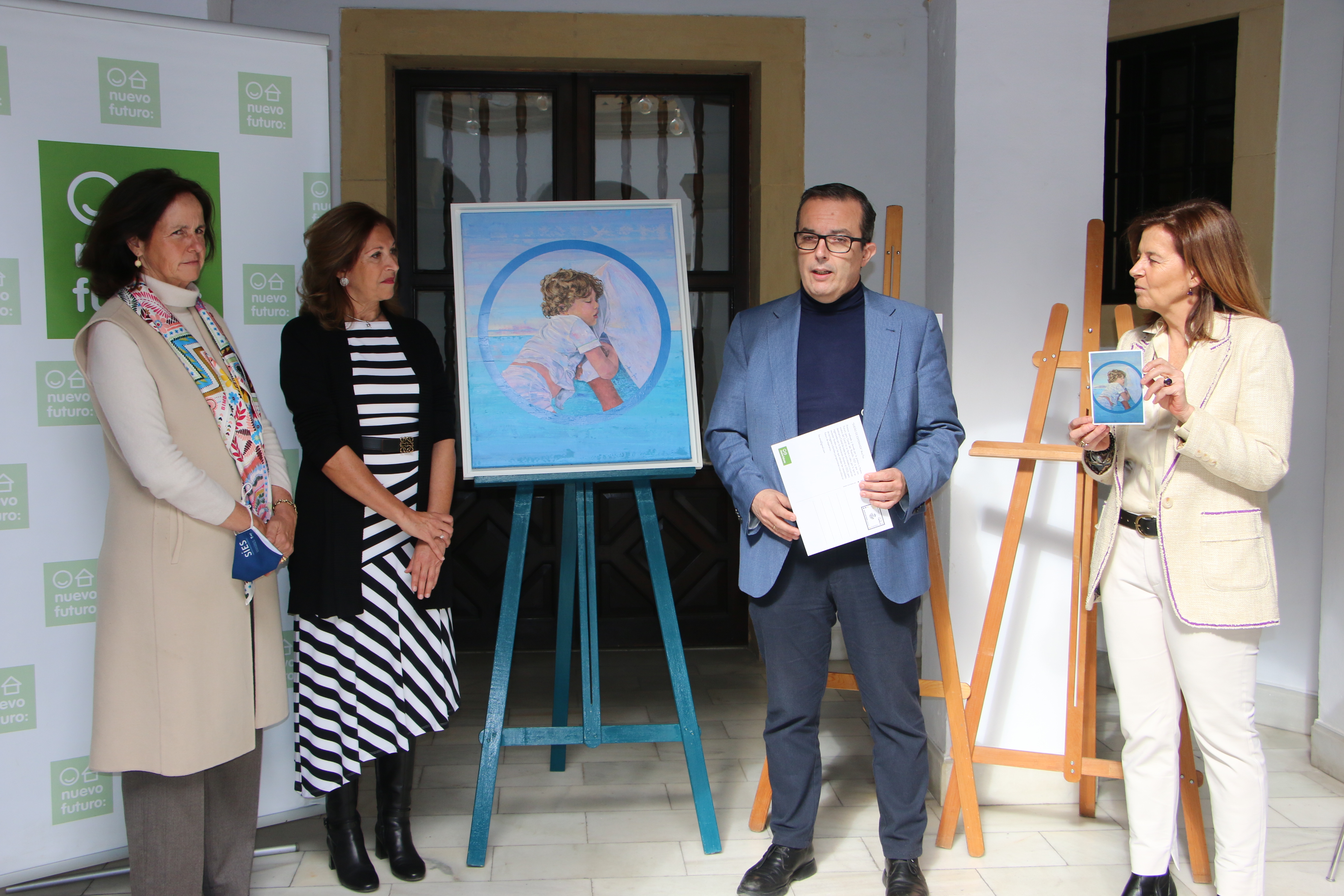 La presentación del cartel ha tenido lugar en un acto que ha contado con la participación de la presidenta de Nuevo Futuro Sevilla, Mónica Gutiérrez; el director de la oficina principal de correos de Huelva, Manuel Gil Sevillano; Ángela de Madariaga Parias, vicepresidenta de la Fundación Valentín de Madariaga; y la autora del cartel, Ana Feu.