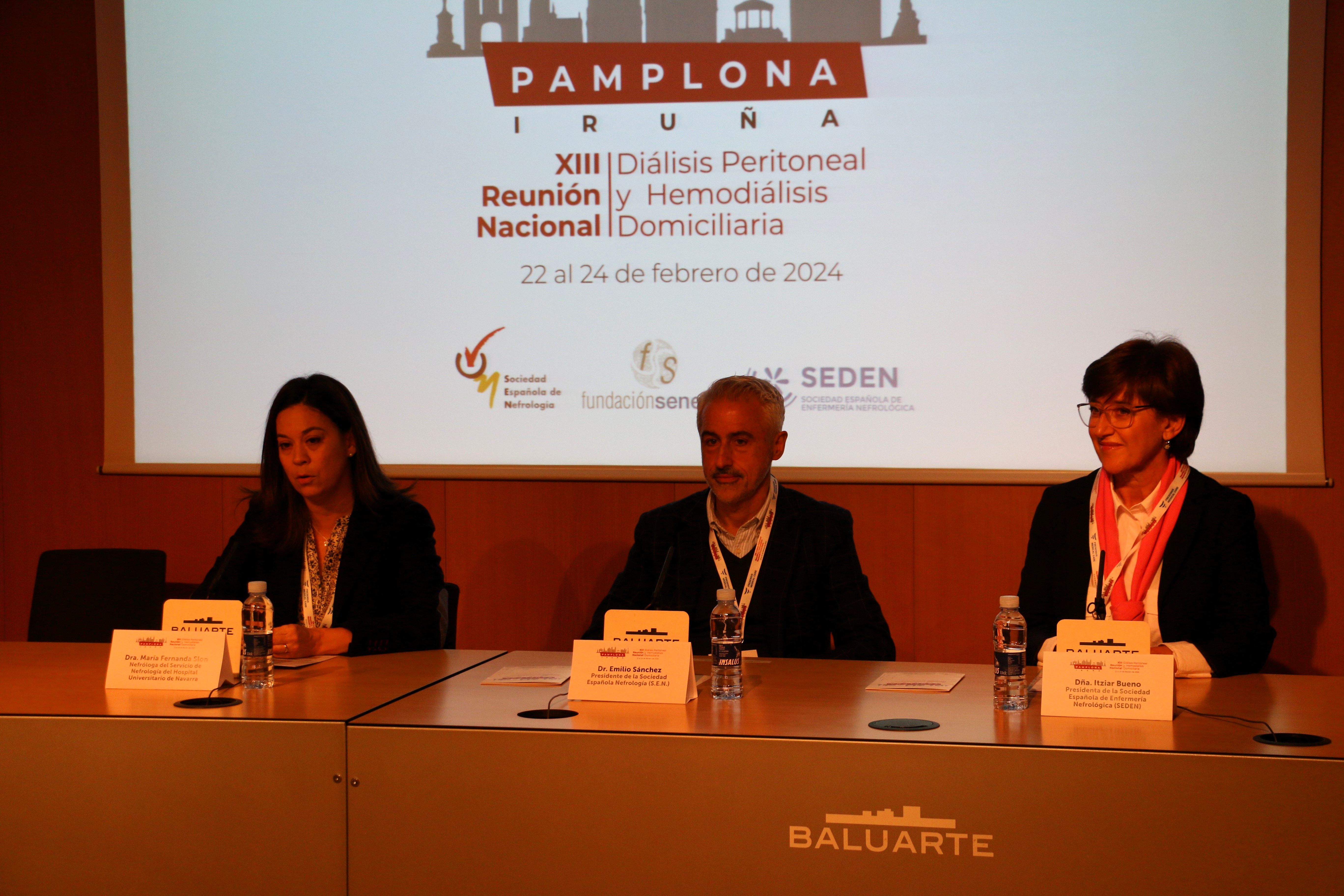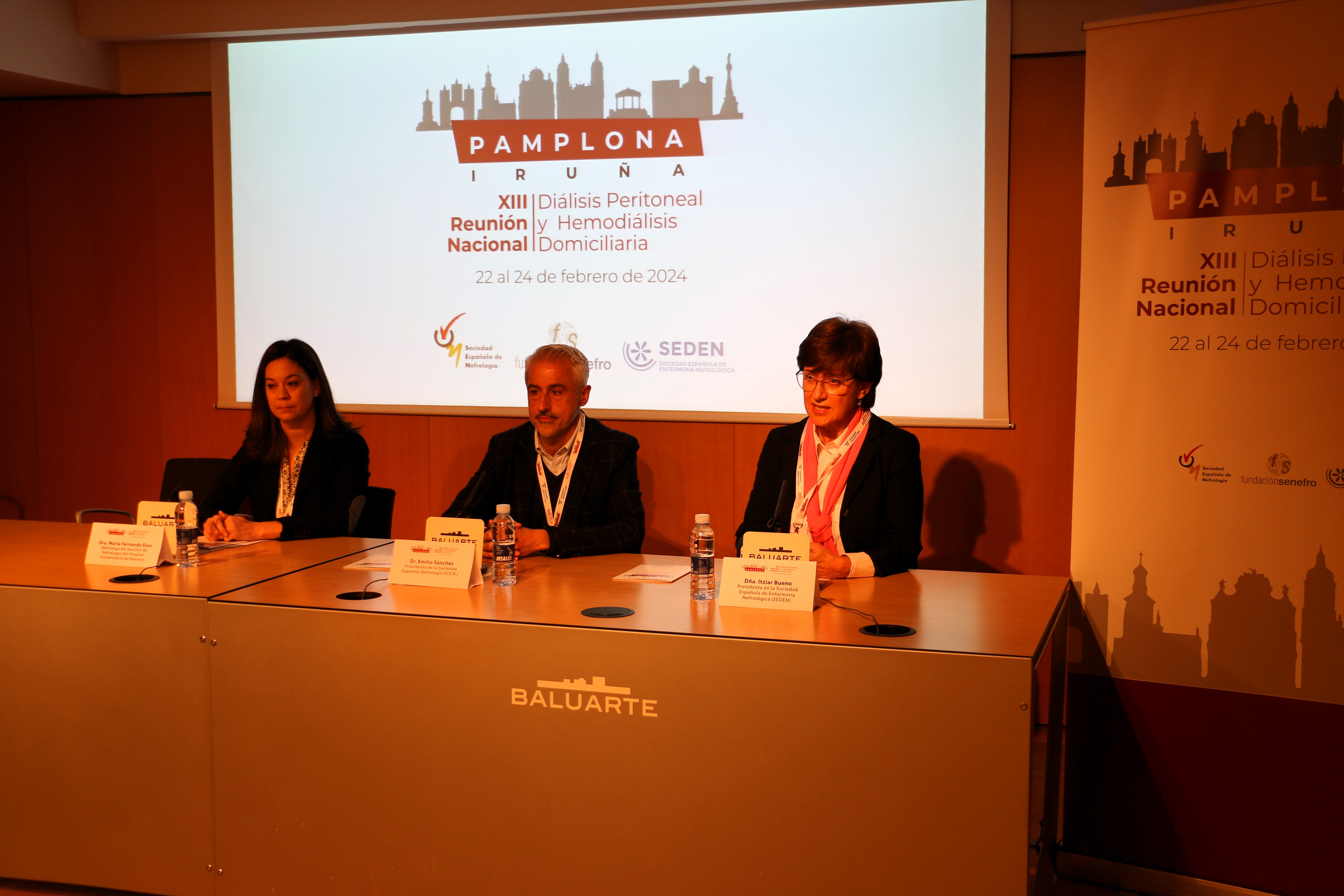 PIE DE FOTO: De izquierda a derecha, María Fernanda Slon, Emilio Sánchez e Itziar Bueno, durante la presentación de la XIII Reunión Nacional de Diálisis Peritoneal y Hemodiálisis Domiciliaria en Pamplona.