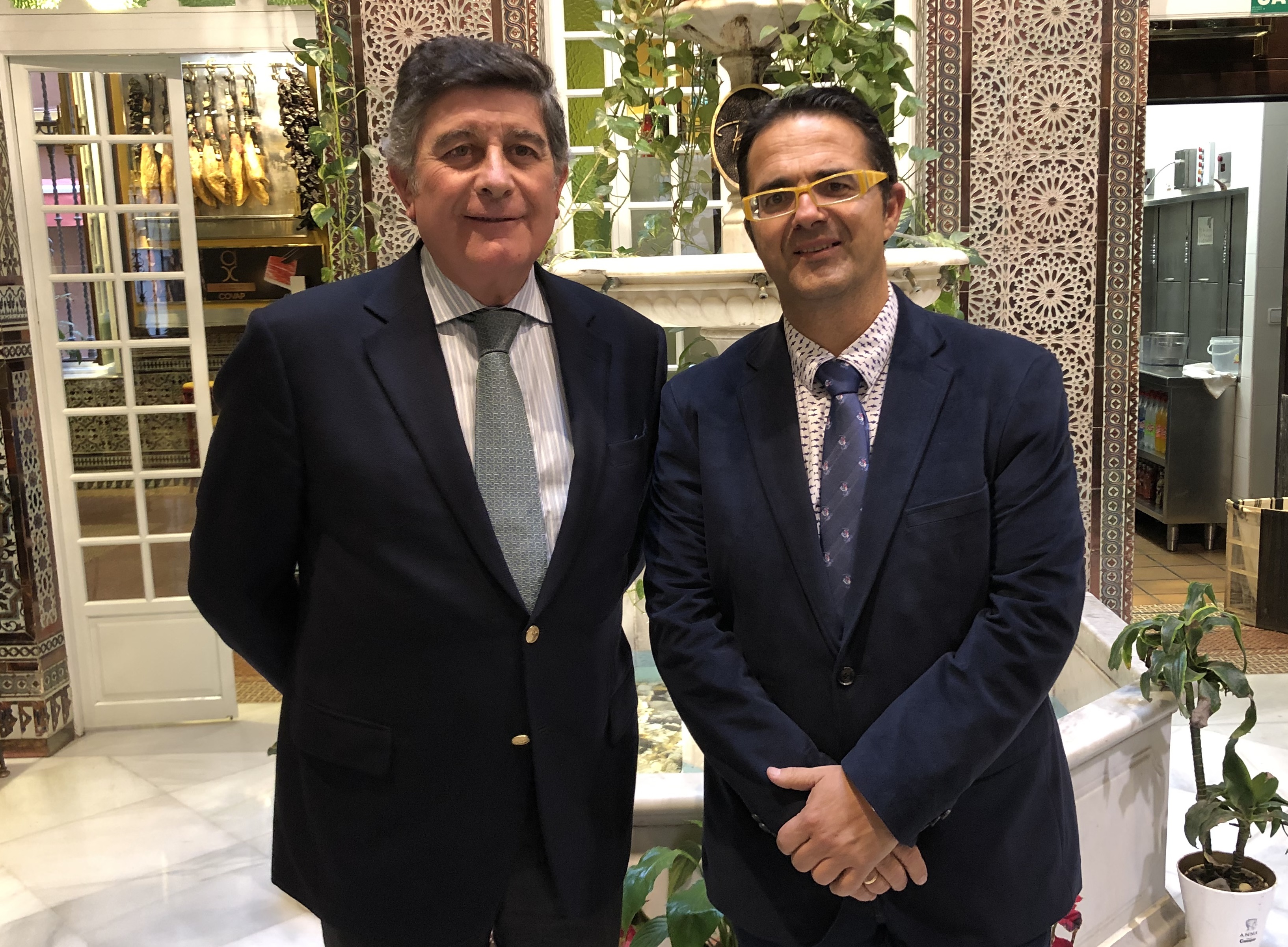 PIE DE FOTO: Manuel Pérez (a la izquierda), presidente del Colegio de Farmacéuticos de Sevilla, la Fundación Mehuer y el Congreso, junto a Juan Carrión, presidente de la Federación Española de Enfermedades Raras.