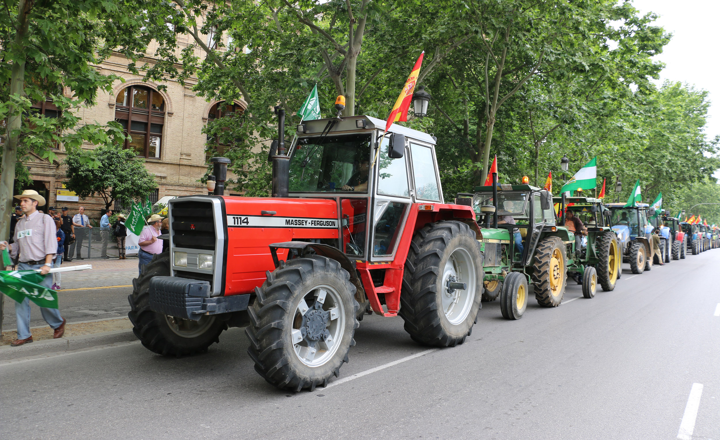 Los más de 100 regantes, muchos de los cuales circulaban en tractores, partieron a las 8 de la mañana desde el recinto ferial de El Palmar de Troya para llegar a la sede de la CHG en la capital hispalense, donde han mostrado su disconformidad por la lentitud a la hora de responder a su demanda por parte del organismo dependiente del Ministerio de Agricultura y Pesca, Alimentación y Medio Ambiente.