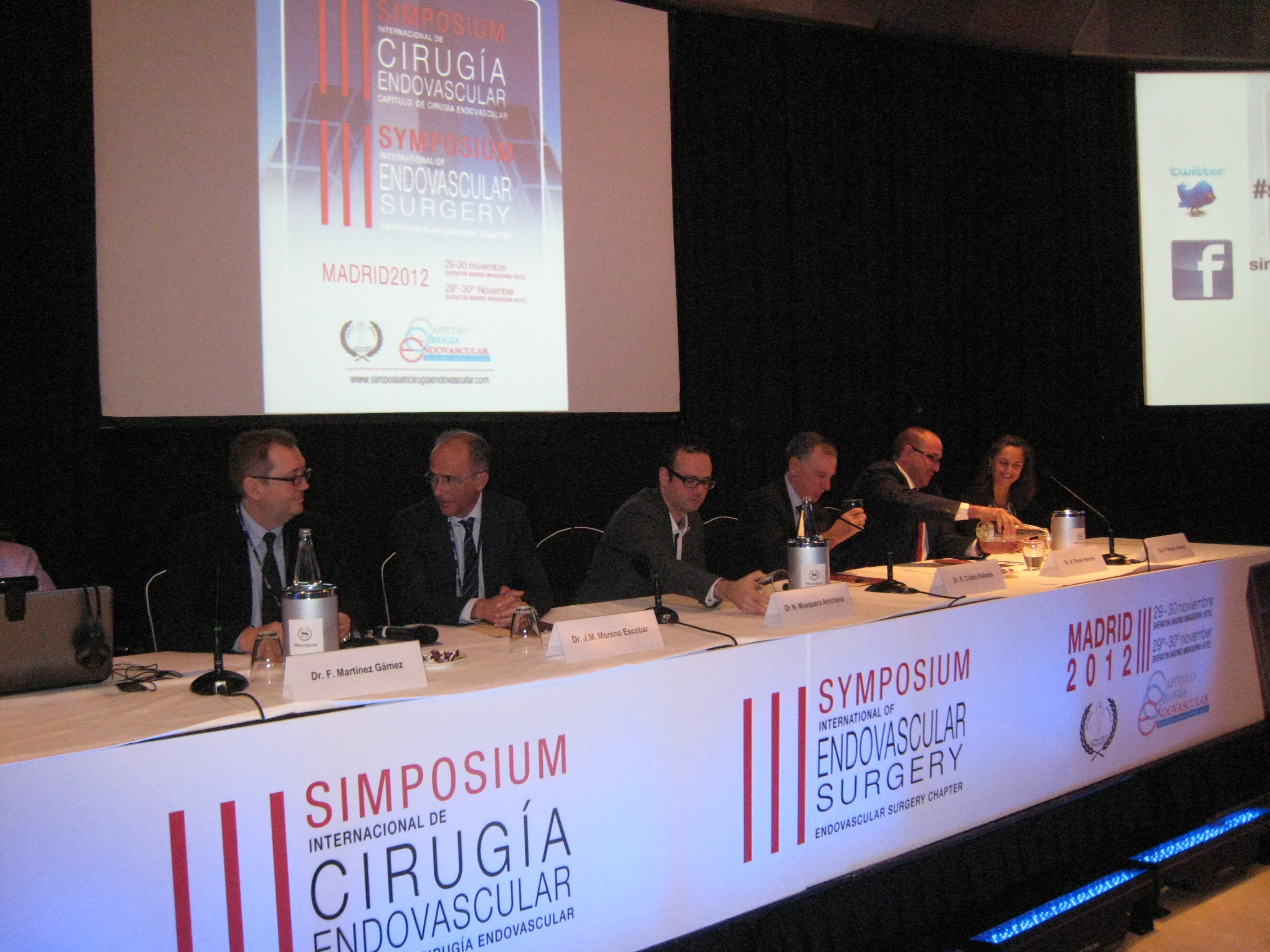 Pie de foto. En primer término (desde la izquierda), el Dr. Francisco Javier Martínez Gámez, del Servicio de Angiología y Cirugía Vascular del Hospital de Jaén, esta mañana durante una de las mesas del III Simposium Internacional de Cirugía Endovascular que se celebra en Madrid.