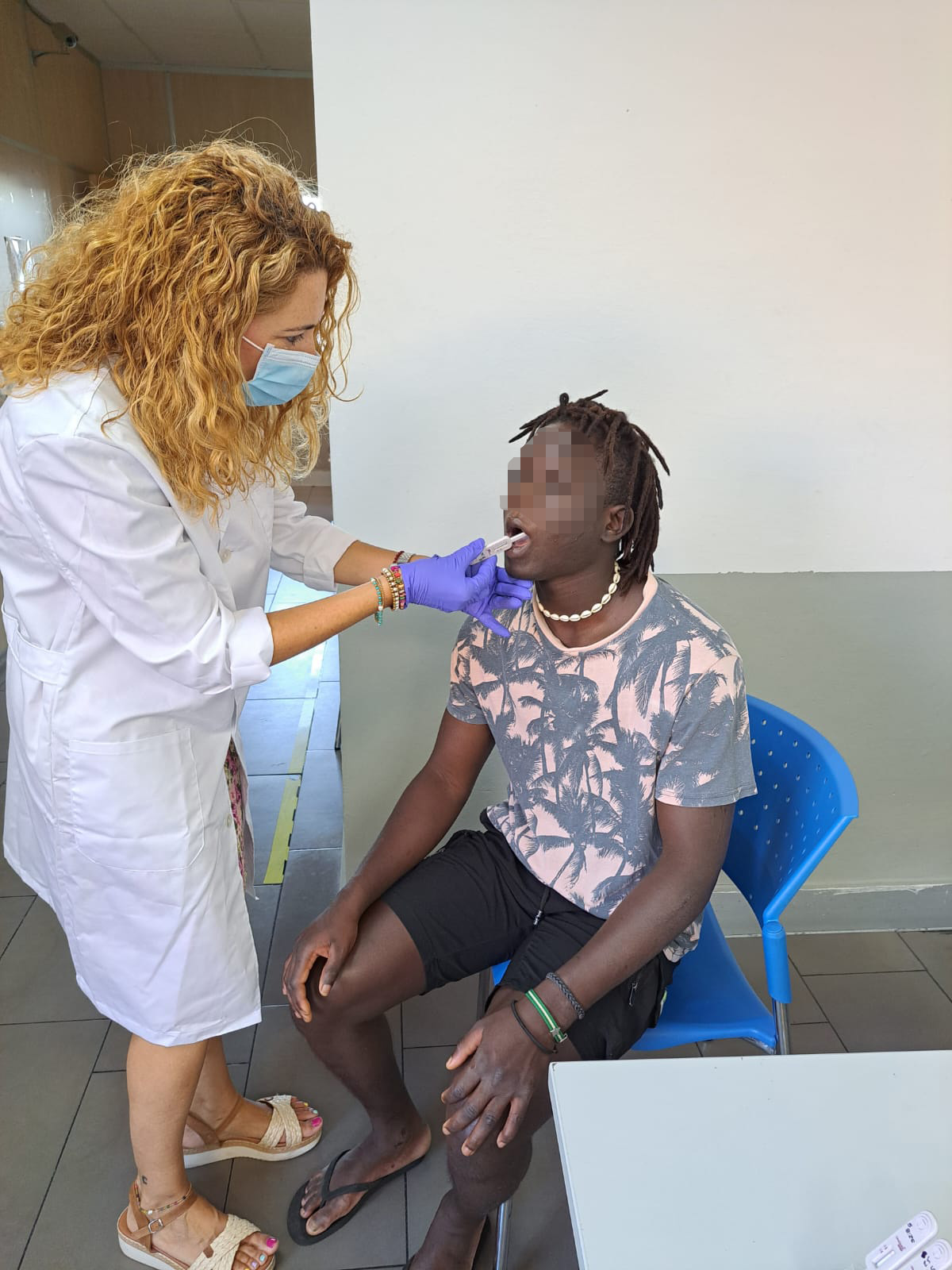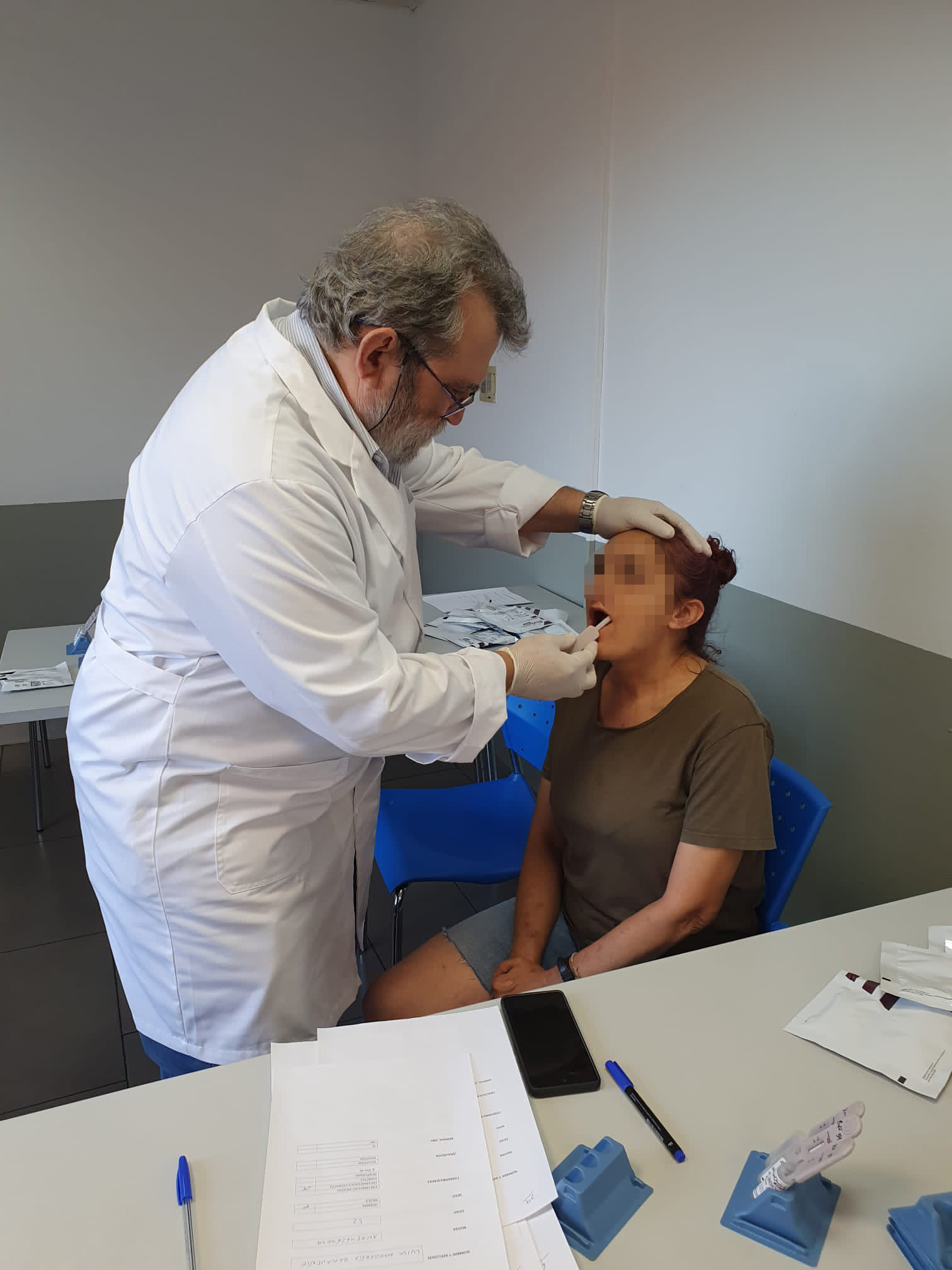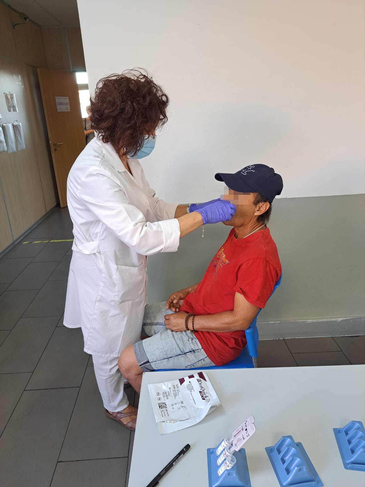PIE DE FOTO: Test de hepatitis C a una persona sin hogar en el Centro de Alta Tolerancia Virgen de los Reyes