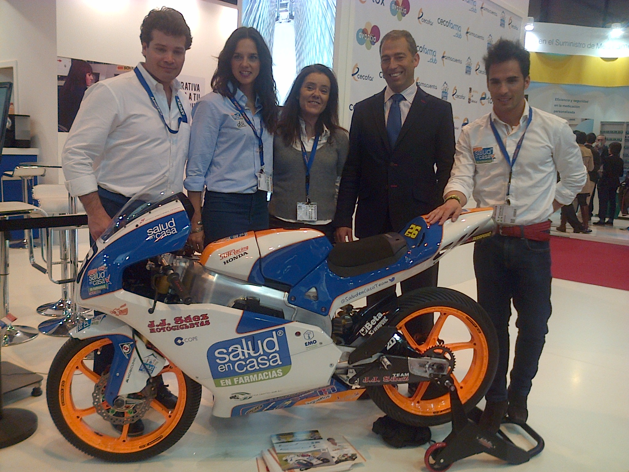 26 de marzo de 2014.- Toni Elías, actualmente piloto de Superbikes y campeón del Mundo en Moto 2 en 2010, y María Pujol, campeona de España y Andalucía de triatlón, han participado hoy en la presentación en Infarma (Madrid) de ‘Salud en Casa Sport’, una nueva línea de artículos y servicios de ayuda ofrecidos desde la farmacia para prevenir lesiones y fomentar la práctica segura del deporte. La iniciativa, tutelada por CECOFAR, tiene el objetivo de convertir la oficina de farmacia en el espacio de referencia para recibir información, asesoramiento y servicios vinculados al binomio salud y deporte, mostrando a la población que, también para cualquier duda o servicio relacionado con el deporte y la salud, puede contar con su farmacéutico. En dicha presentación también estuvieron José Luis Cardoso, ex piloto sevillano y actualmente director de una escuela de pilotos. Casualmente, Toni Elías ha celebrado su 31º cumpleaños durante esta presentación.