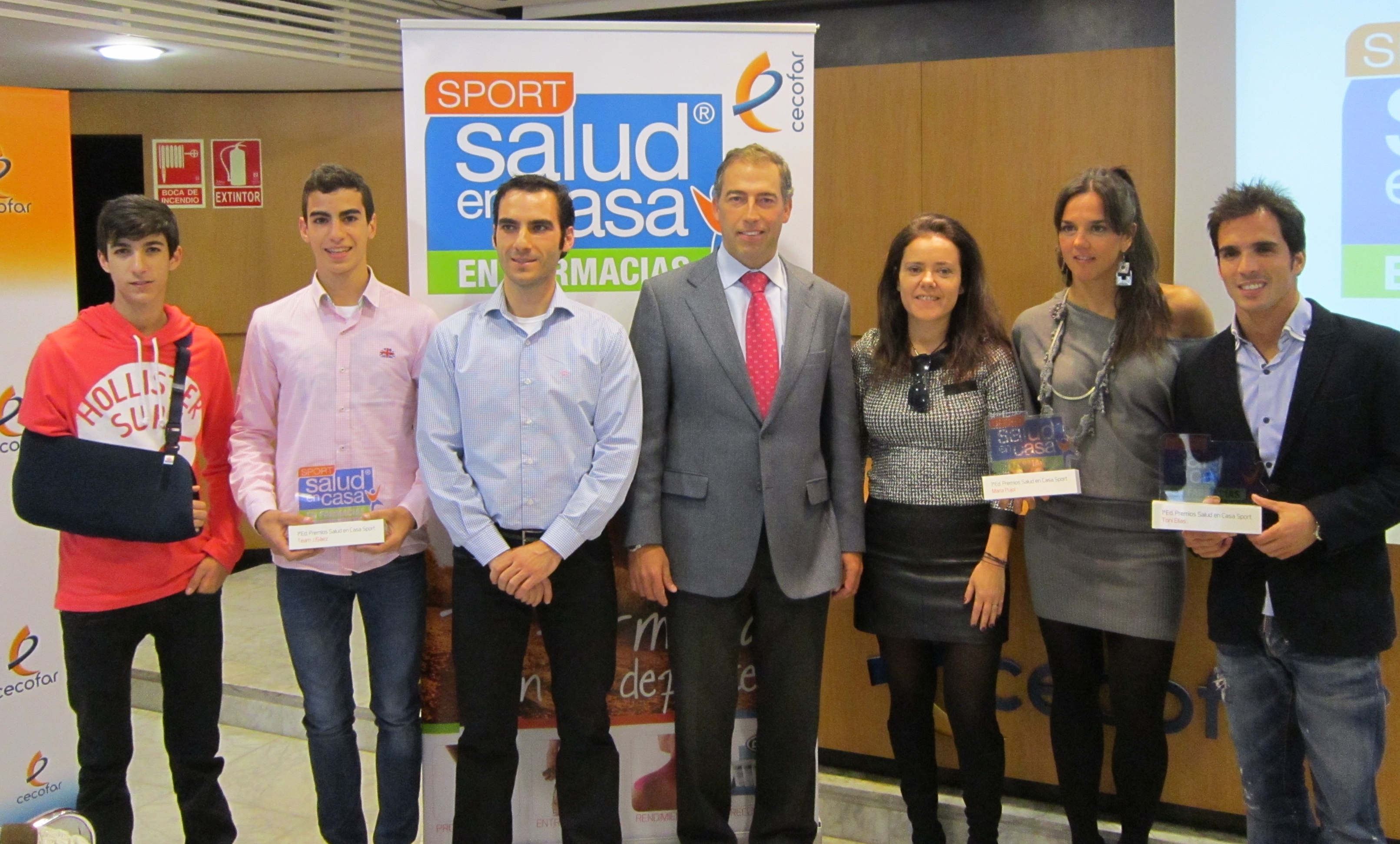 Sevilla, 2 de diciembre.- Toni Elías, campeón del Mundo en Moto 2 en 2010, la sevillana María Pujol, campeona de España y Andalucía de triatlón, y el equipo Team JJ Sáez, un equipo familiar de motociclismo de Talavera de la Reina (Toledo), en el que milita Juan José Núñez, un joven de 17 años que nació con Espina Bífida y que tiene una casi nula movilidad y sensibilidad en la pierna derecha, han recibido hoy los I Premios de CECOFAR y Salud en Casa Sport sobre Salud y Deporte, con los que esta cooperativa farmacéutica, una de las mayores distribuidoras de medicamentos de España, quiere reconocer el esfuerzo y la superación en el deporte ante la adversidad.