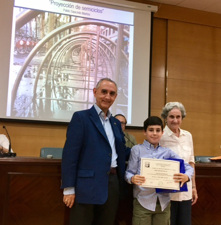 La obra de Pablo Saucedo Martos consistió en una fotografía de semiciclos basada en los aparcamientos municipales de bicicletas de Sevilla, ya que el tema del concurso se centraba en reflejar algún concepto o noción matemática en las obras presentadas. El alumno del Colegio Internacional San Francisco de Paula recogió el premio recientemente en el Salón de Actos de la Facultad de Matemáticas de la Universidad de Sevilla.
