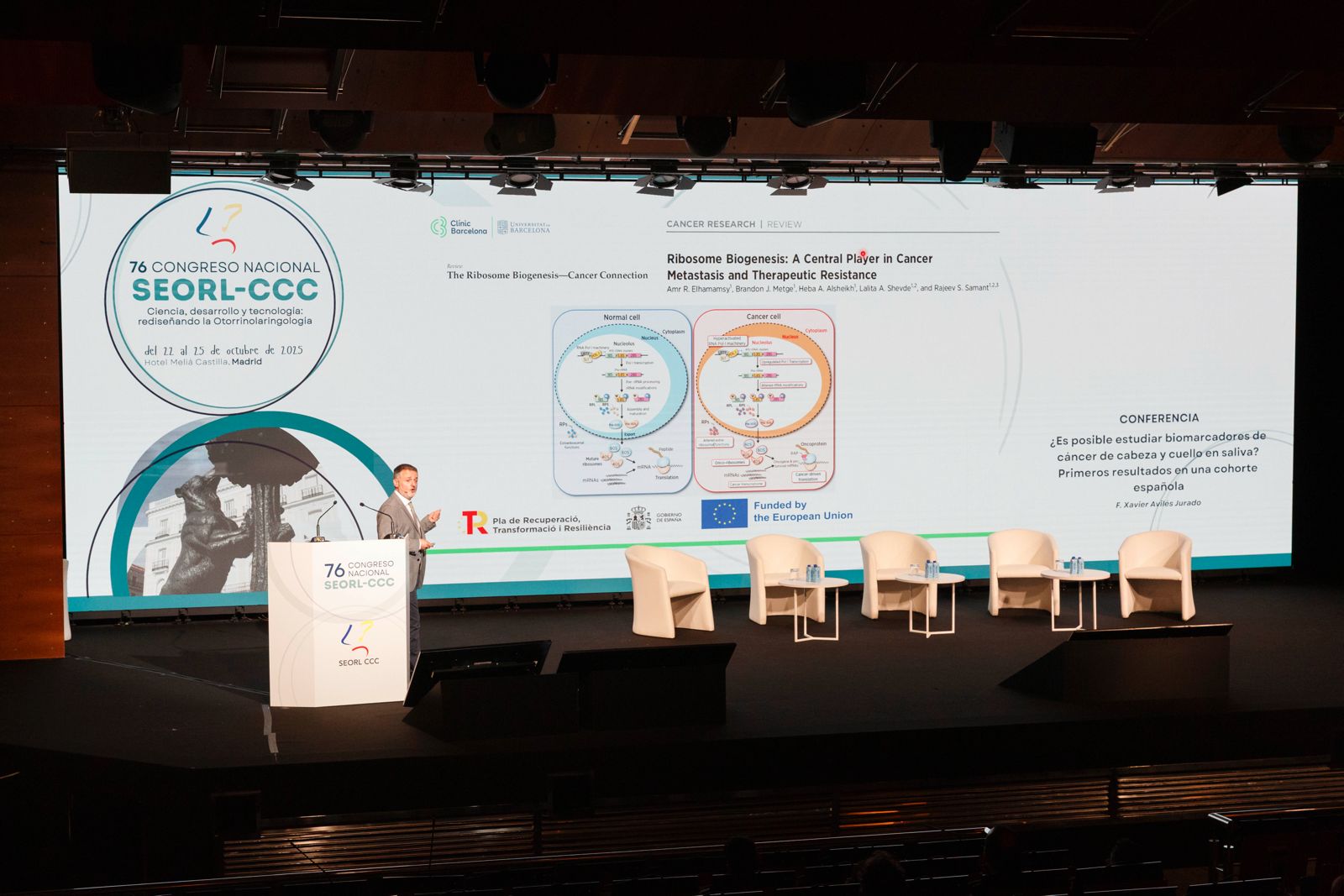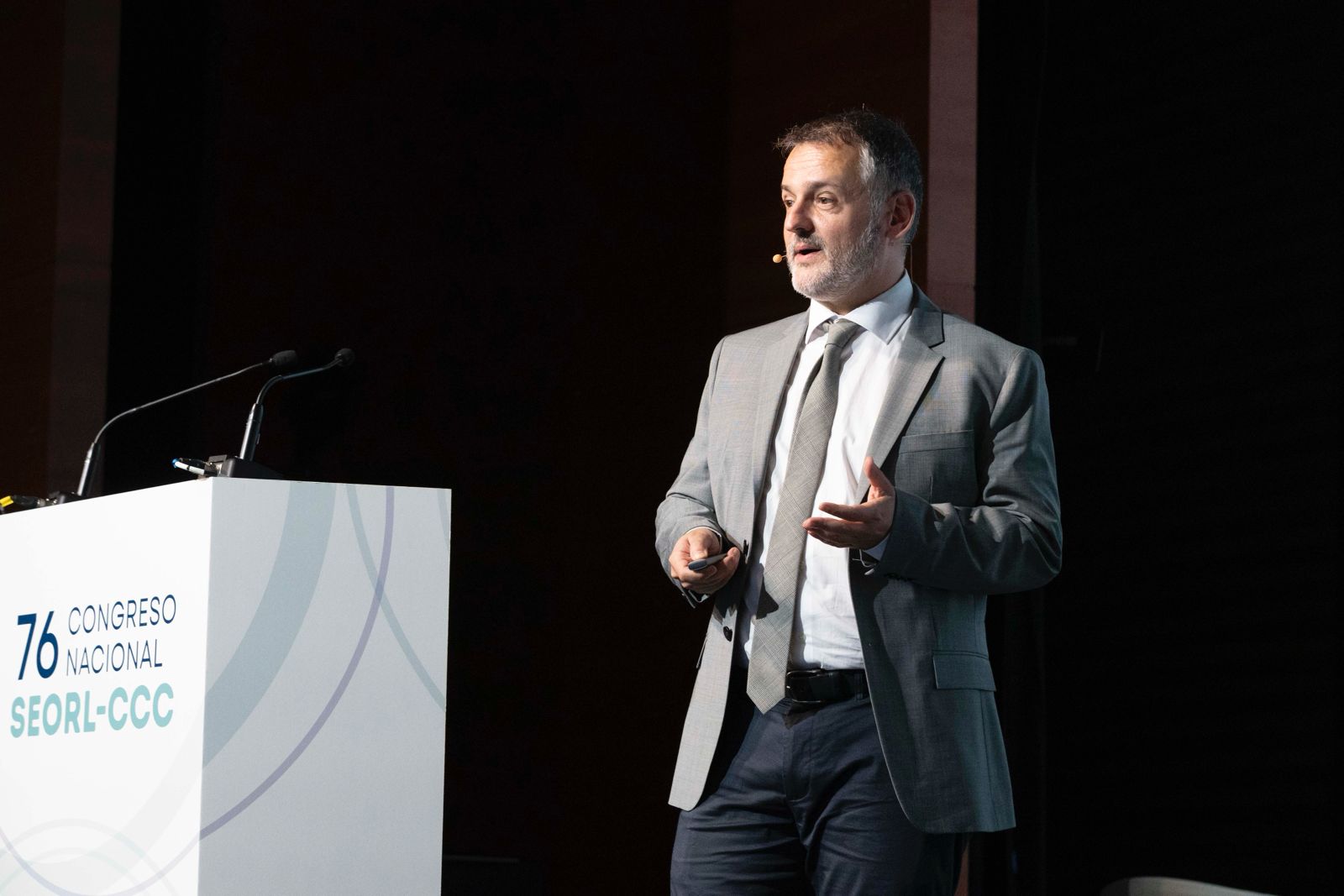 PIE DE FOTO: El Dr. Xavier Avilés, del Hospital Clínic de Barcelona, durante la presentación de este estudio pionero en el marco del 76º Congreso Nacional de la SEORL-CCC.