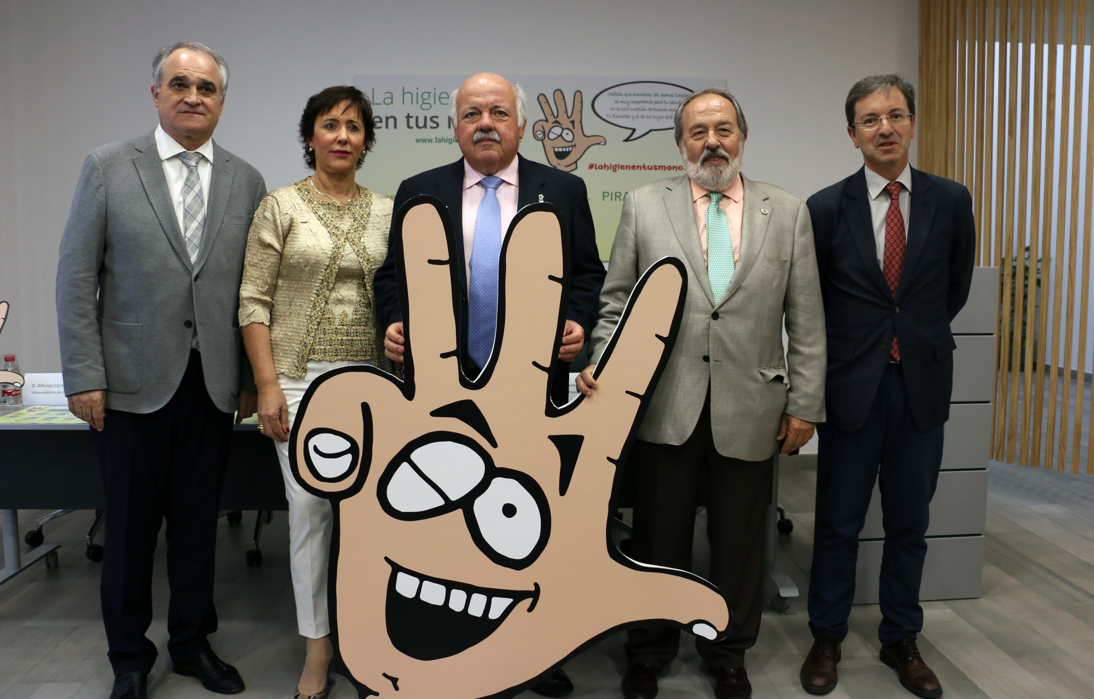 Sevilla, 15 de mayo de 2019.- El consejero de Salud y Familias de la Junta de Andalucía, Jesús Aguirre, ha presentado hoy en la sede del Consejo Andaluz de Colegios Oficiales Farmacéuticos (CACOF), la campaña “La higiene en tus manos”, una iniciativa promovida conjuntamente por los Consejos Andaluces de Colegios de Farmacéuticos, Médicos (CACM) y Odontólogos (CACOD) y la propia Consejería de Salud, a través del programa PIRASOA, con el fin de concienciar y sensibilizar a la población andaluza de la importancia de cuidar la higiene de las manos como vía fundamental para proteger la salud y prevenir la transmisión de enfermedades infecciosas y el contagio a otras personas.