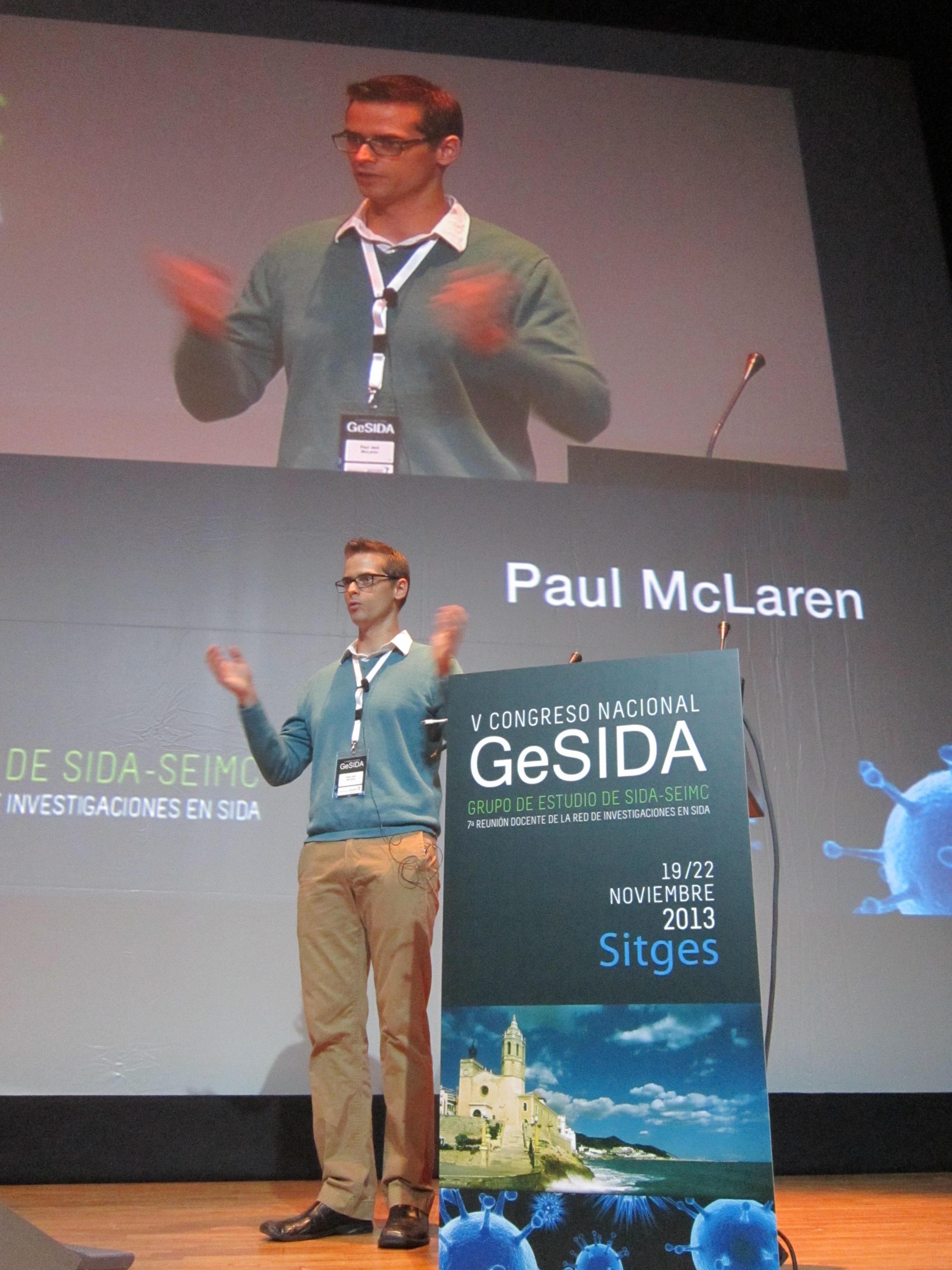 El Dr. Paul McLaren, del Institute for Microbiology de Suiza, fue el encargado de abrir el ciclo de ponencias con su presentación sobre los factores genéticos, tanto del huésped como del virus, que determinan la rapidez con la que se puede desarrollar el sida en pacientes no tratados. McLaren abundó en la idea ya conocida de que son los factores del huésped los determinantes para la progresión de la enfermedad. En este sentido, concretó que los factores presentes en el sujeto infectado que influyen en el desarrollo de la patología están concentrados en la región del HLA (Human Leokocyte Antigen). El sistema HLA está compuesto por los genes MHC, o complejo principal de histocompatibilidad, una familia de genes ubicados en el brazo corto del cromosoma 6 cuyos productos están implicados en la presentación de antígenos a los linfocitos T.